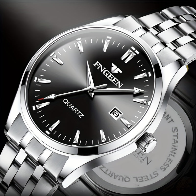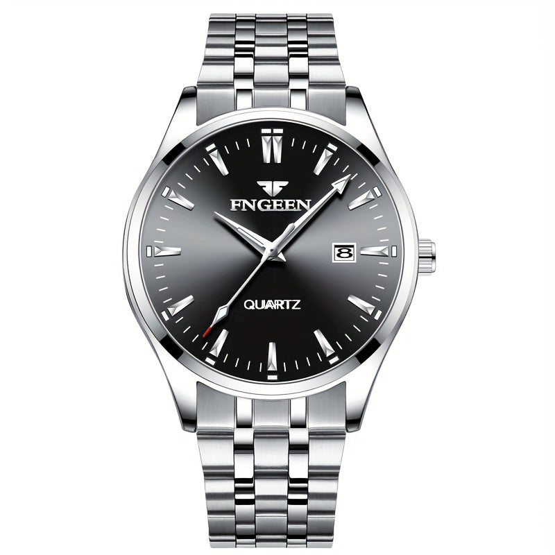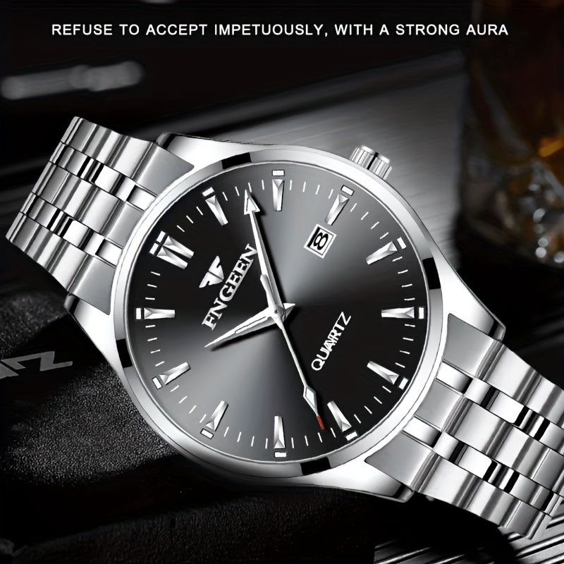 Erkaklar uchun kalendar funksiyali zamonaviy ish soati - nozik dizayn, ultra-ingichka Quartz harakati va zanglamaydigan po'latdan yasalgan tasma.