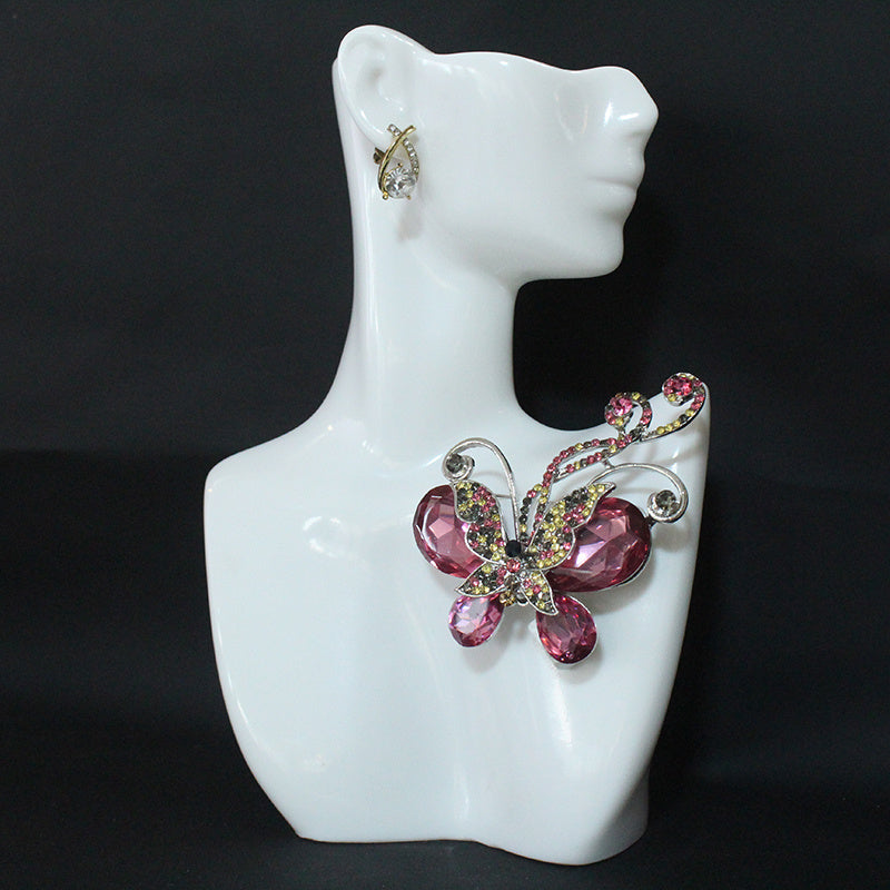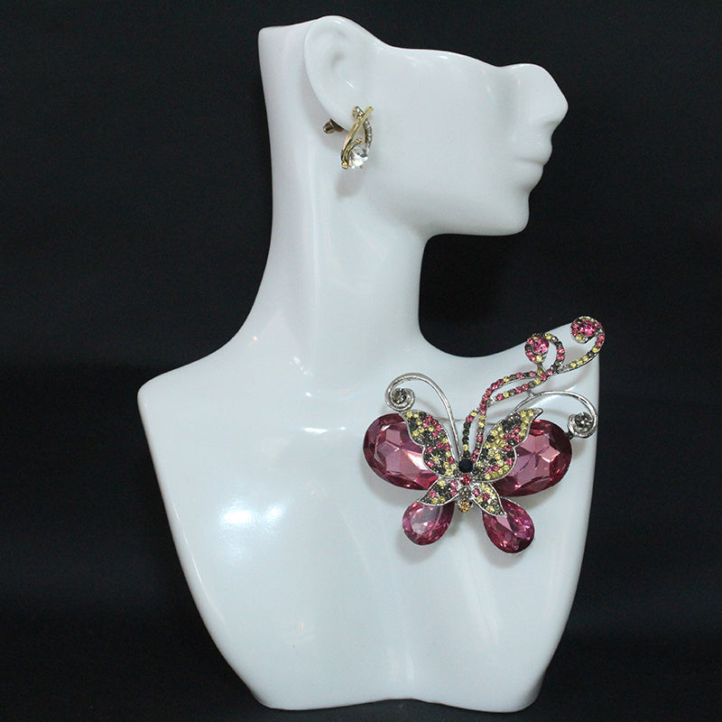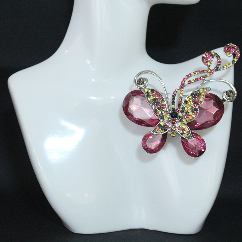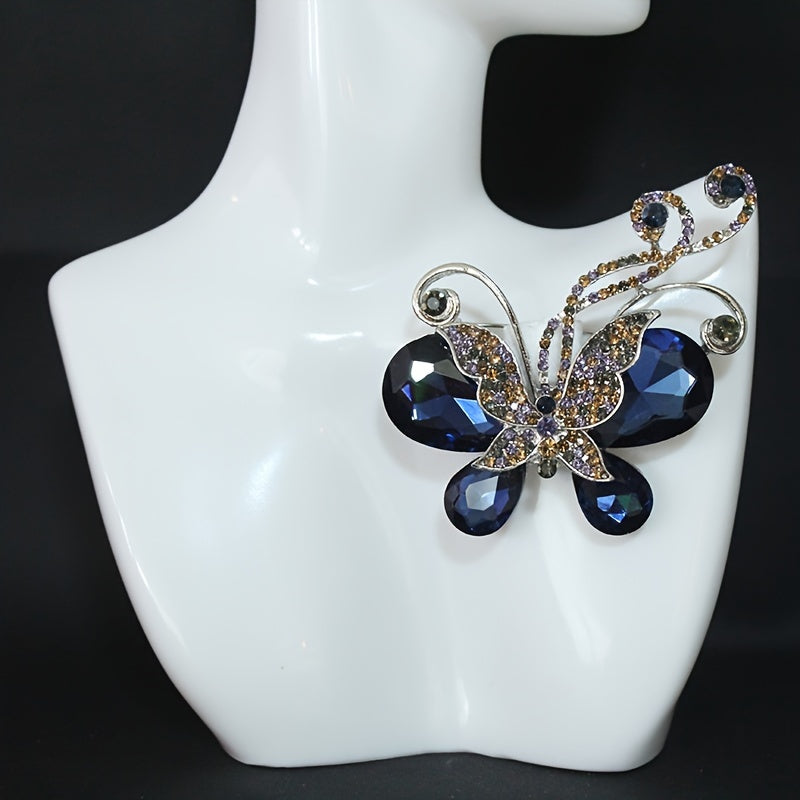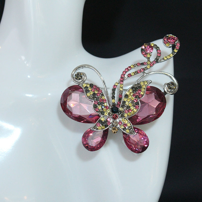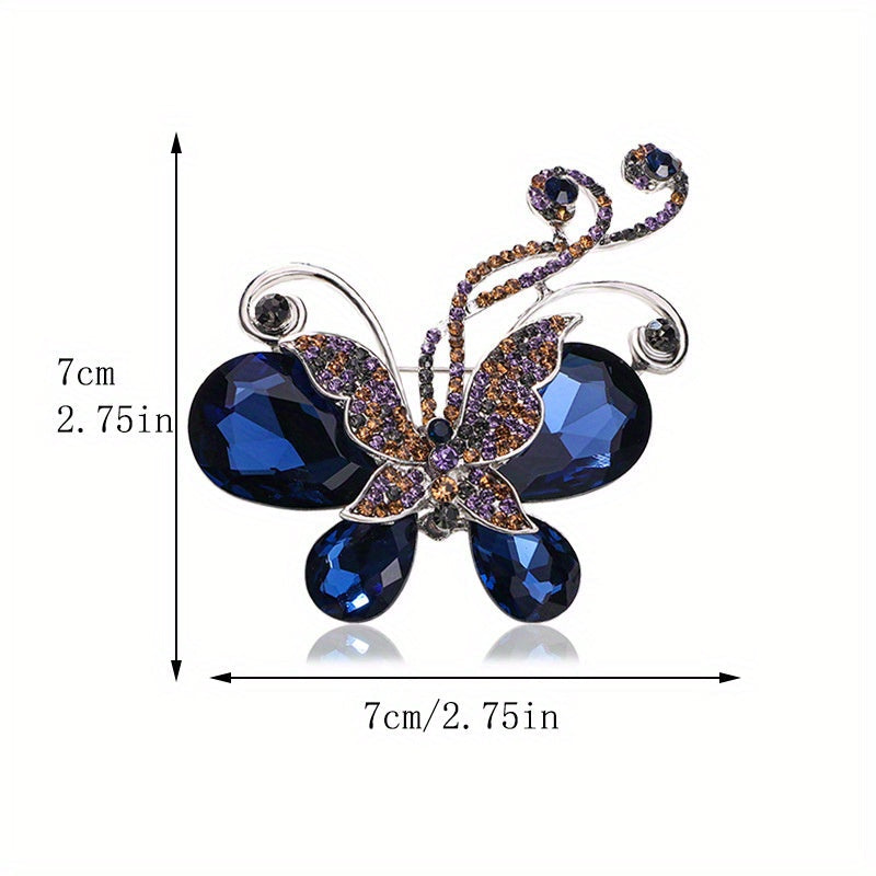 Ayollar kiyim aksessuarlari uchun shisha bilan bezatilgan kapalak shaklidagi lapel pin