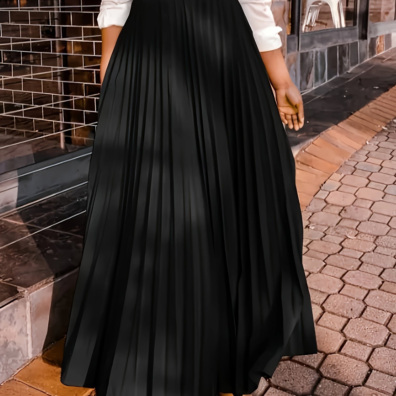 Katta o'lchamdagi ayollar uchun bir rangli, nafis elastik bel maxi yubka.