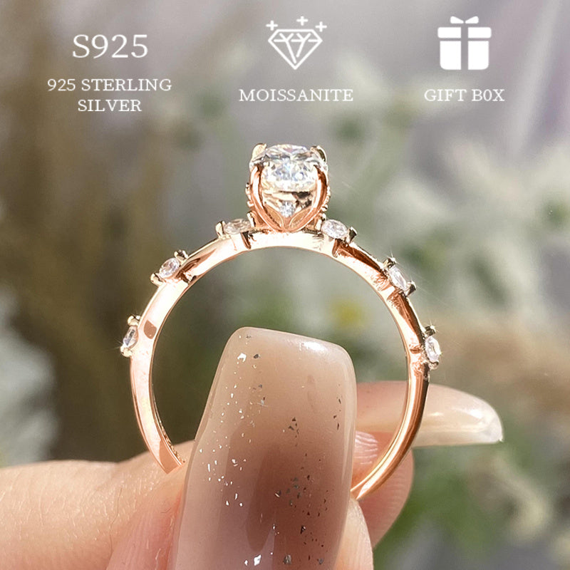 Zarif gippoallergen 925 sterling kumush moissanit halqasi, g'oz tuxum shaklida, 1-2ct Premium Sense ayollar uchun. Taklif, to'y, nikoh yoki 14-fevral sovg'asi sifatida mukammal. Moissanit sertifikati va chiroyli sovg'a qutisi bilan birga keladi.