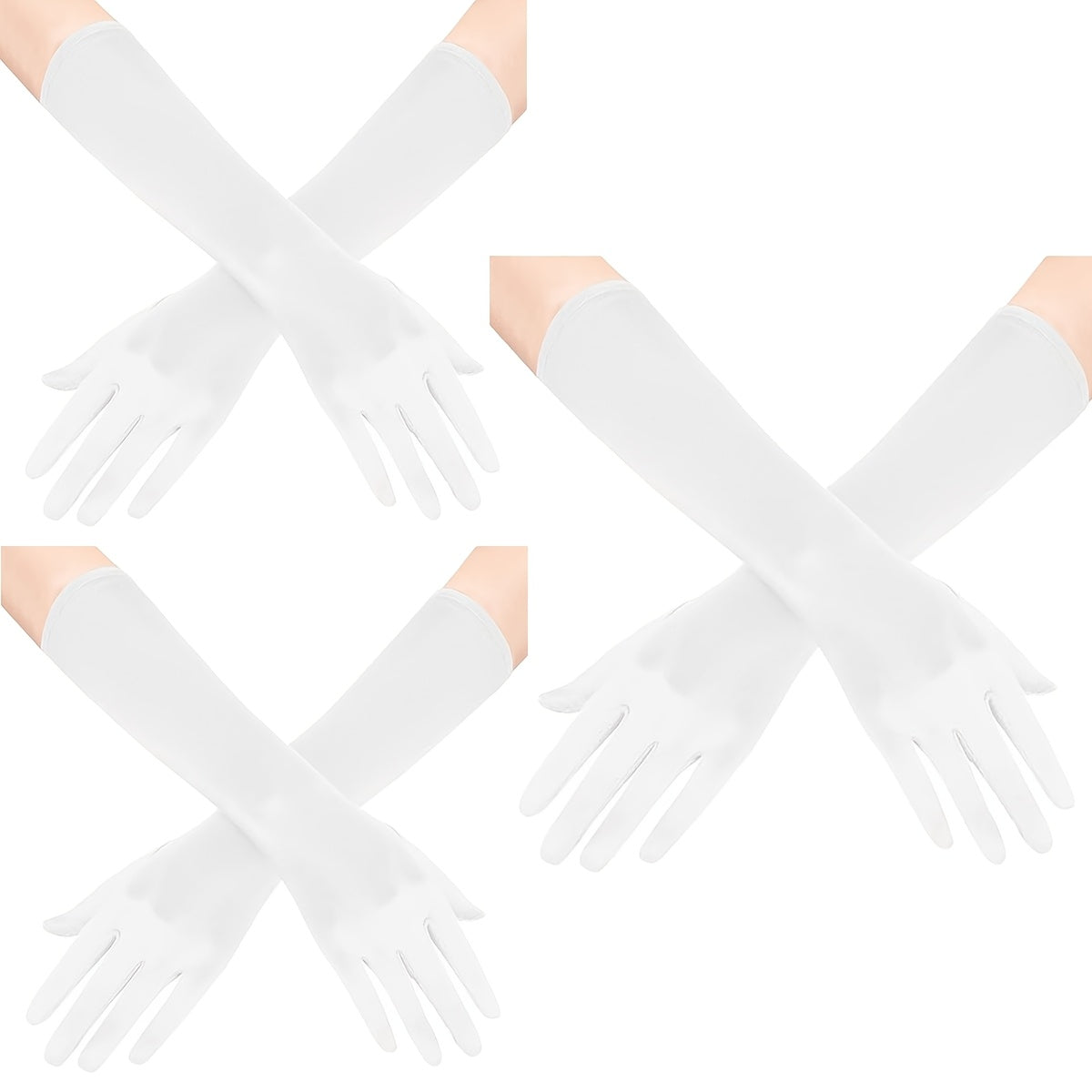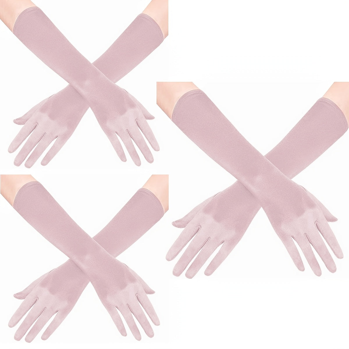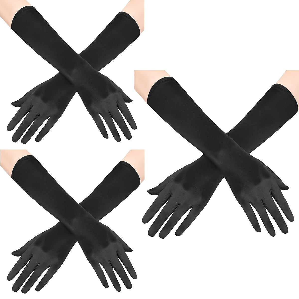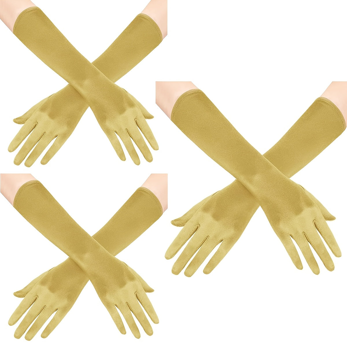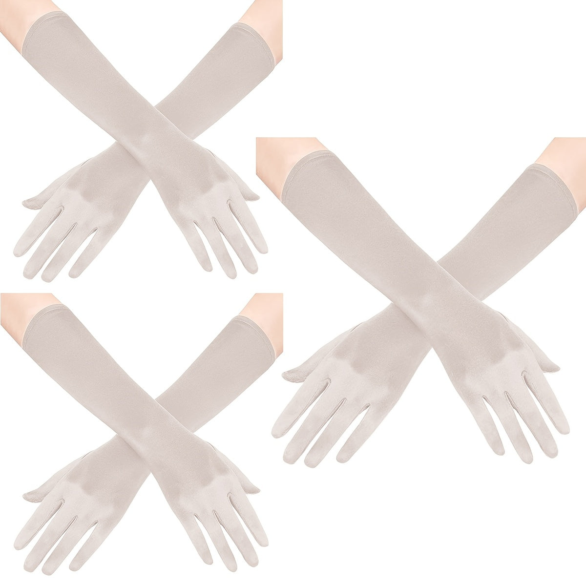 Ayollar uchun satindan tayyorlangan uzun opera qo'llari, 3 ta, vintage, tirsak uzunligi, kechki kiyim va to'y uchun