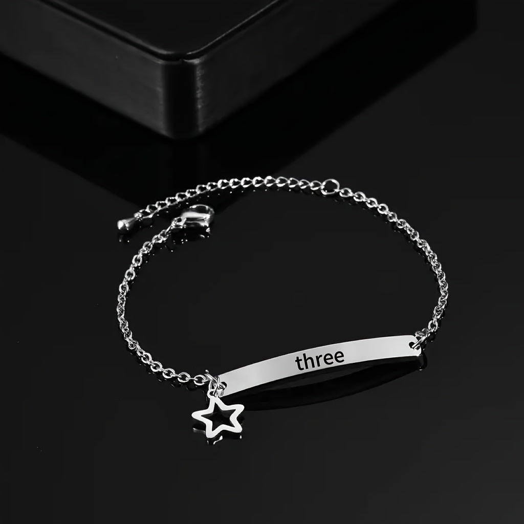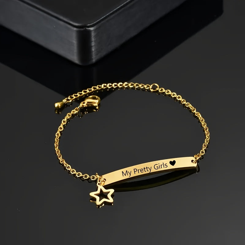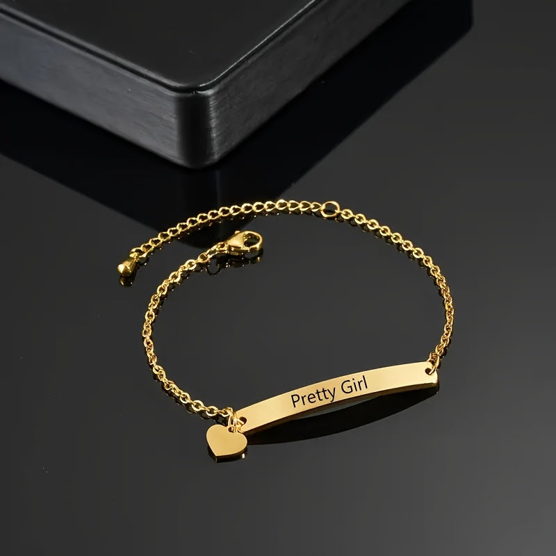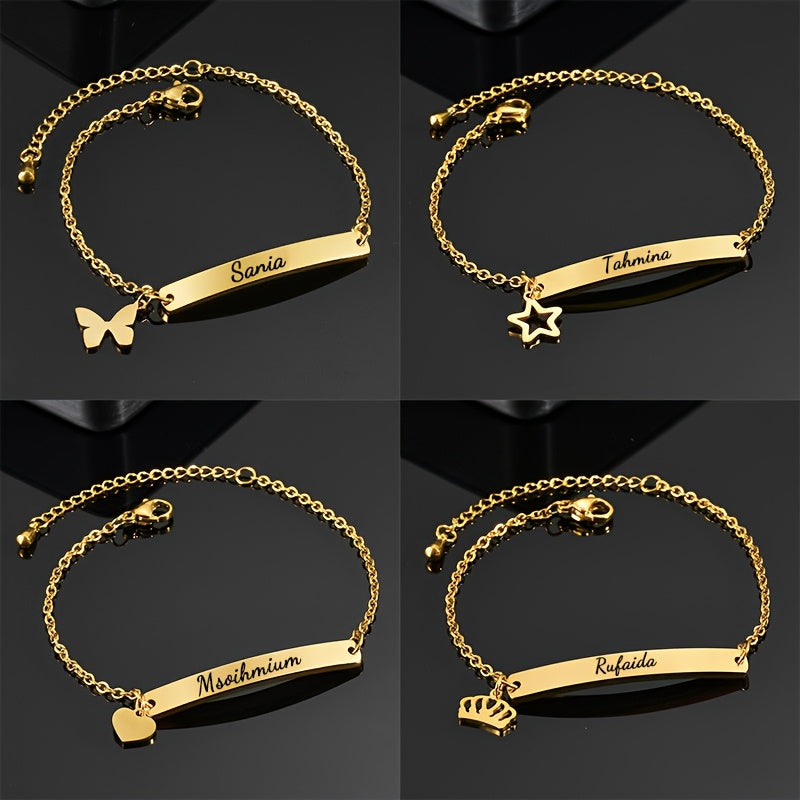 Ayollar uchun zamonaviy minimalist maxsus ism bilaguzuk, yurak va yulduz charm bilan zanglamaydigan po'latdan tayyorlangan. Har qanday tadbir uchun ideal sovg'a. Shaxsiylashtirilgan va berish uchun mos. Ko'rinishingizga bir oz porlash qo'shing.