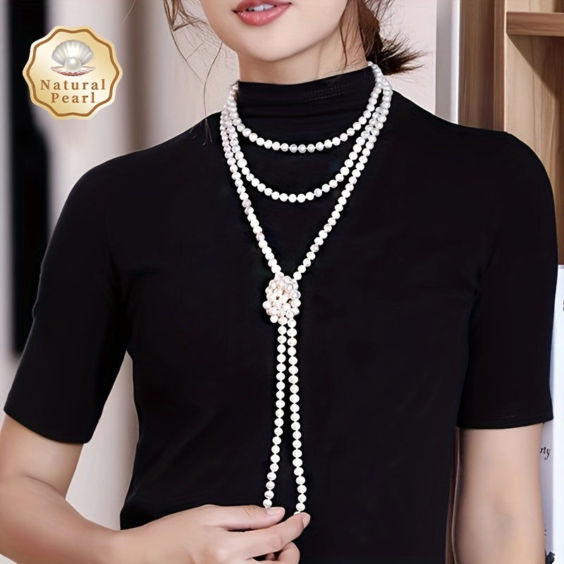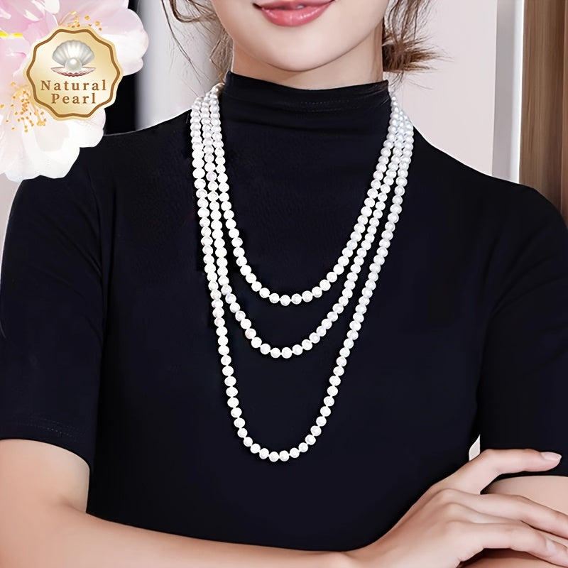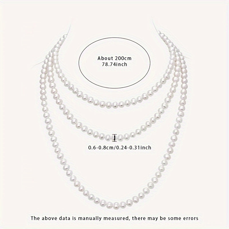 Zarif Ko'p Qavatli Sviter Zanjiri: MUFAN Vintage Tabiiy Shirin Suv Marvaridli Bilaguzuk Ayollar Uchun, 6-8mm, 200sm Uzunlik, Iyul Tug'ilgan Kuni To'pi, Qoplamasiz, Kundalik Kiymak va Maxsus Tadbirlar Uchun Mukammal. Sovg'a Qutisida Keltiriladi.