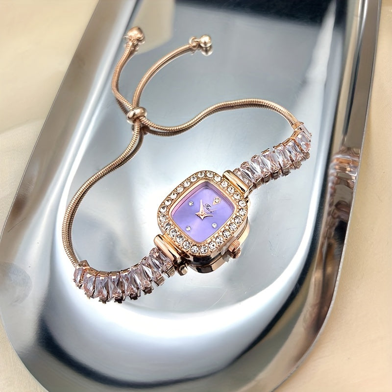 Ayollar uchun kvadrat rhinestone kvarts soat, vintage uslub, sozlanadigan bilaguzuk, partiyalar uchun