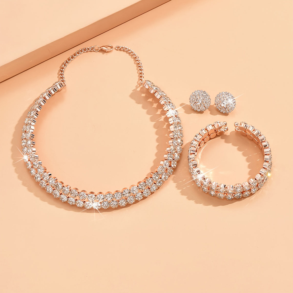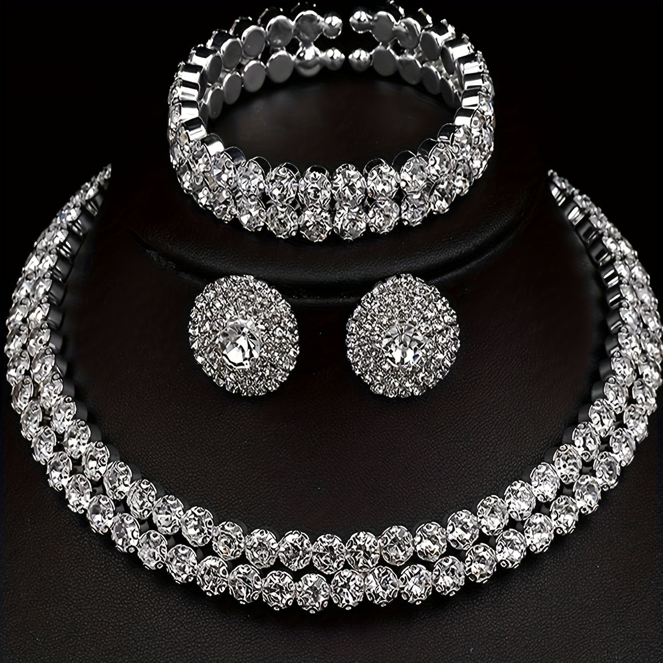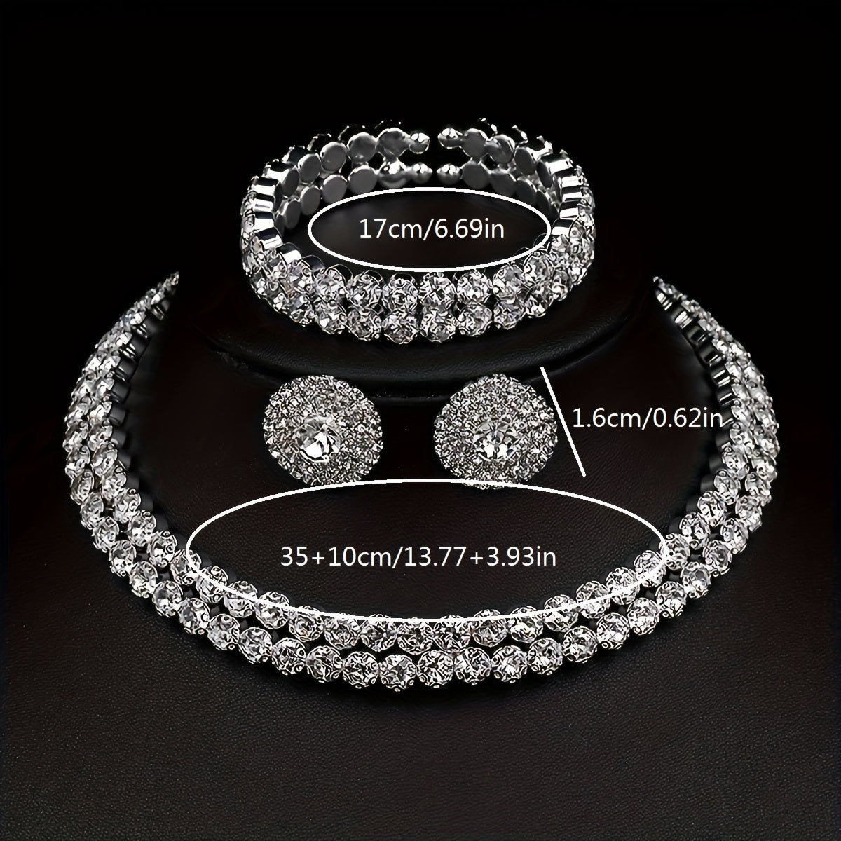 Zarif kumush qoplamali zargarlik to'plami, bir juft bilaguzuk, bir marjon va bir bilaguzukdan iborat bo'lib, barchasi porloq rhinestone'lar bilan bezatilgan. Kundalik kiyimlar bilan moslash uchun yoki ziyofat aksessuar sifatida mukammal.
