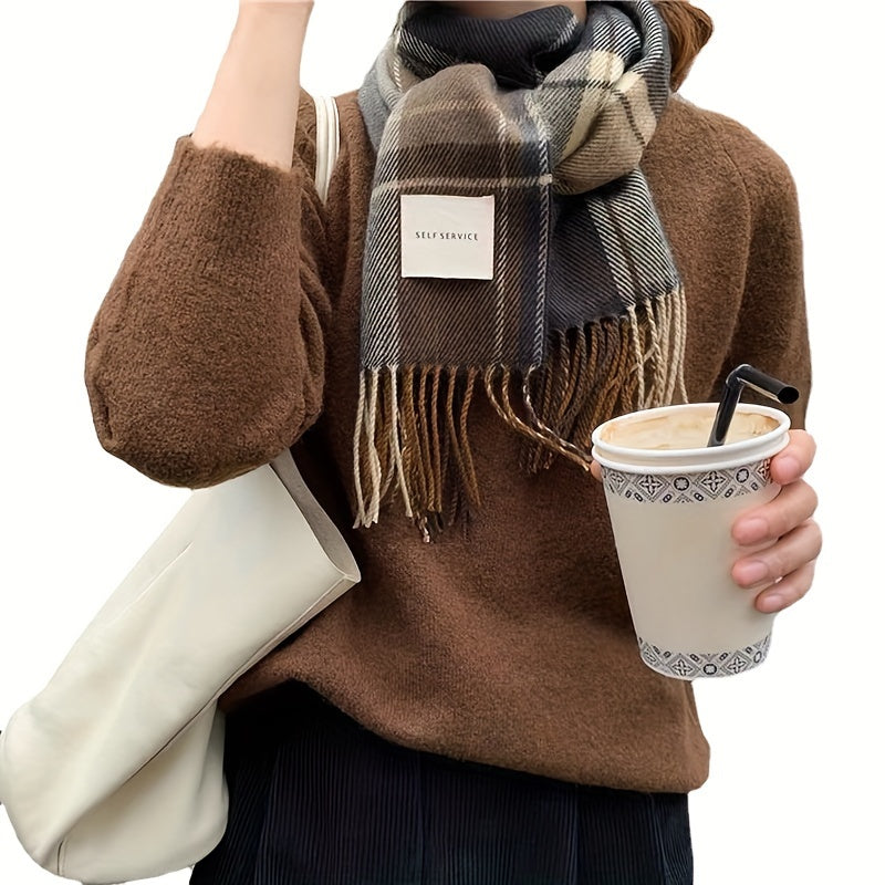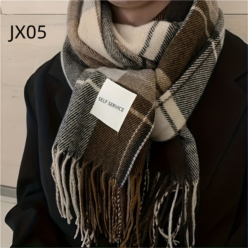 Zarif Vintage Britaniya Kletka Sharf - Qulay, Yumshoq va Moda, Ikkita Erkaklar va Ayollar uchun Tasmalar bilan, Sun'iy Kashmira Materiali, Kuz/Qish Fasllari uchun Ideal