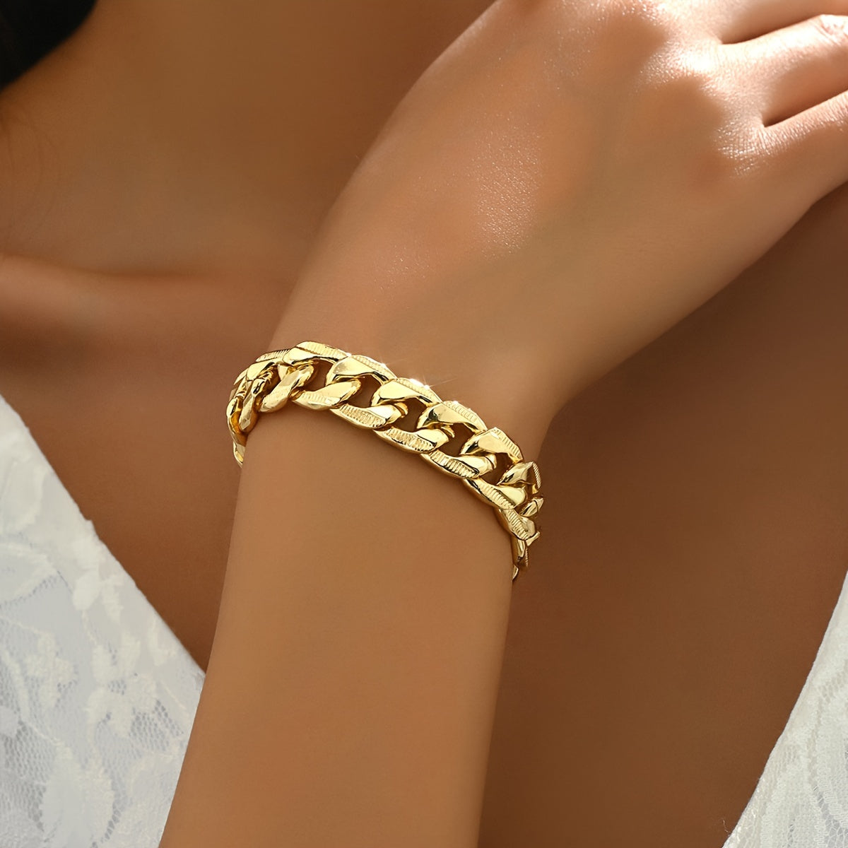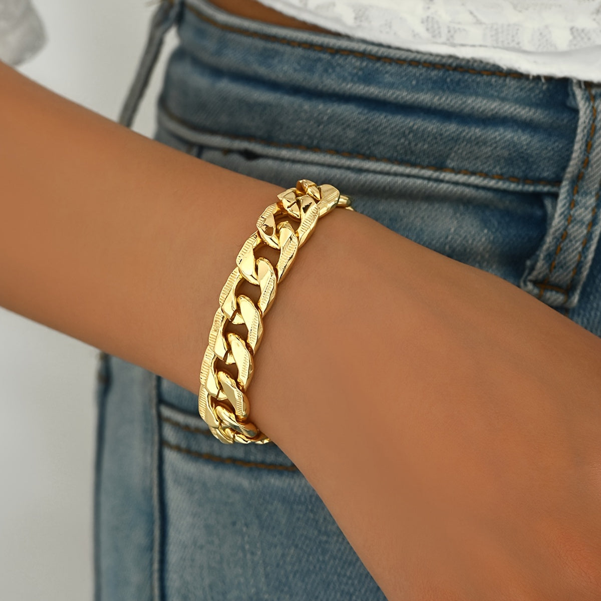 Zarif Vintage Kuba Zanjir Bilaguzuk: 18K Oltin Qoplangan Temirdan Yasalgan, Har Kun yoki Maxsus Tadbirlar Uchun Mukammal