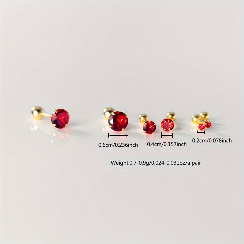 Zarif Vintage Uslubidagi Sterling Silver Stud Muntazamlari Qizil Zirconiya bilan - Gippoallergen va Ayollar uchun Kundalik Kiymak Uchun Mukammal