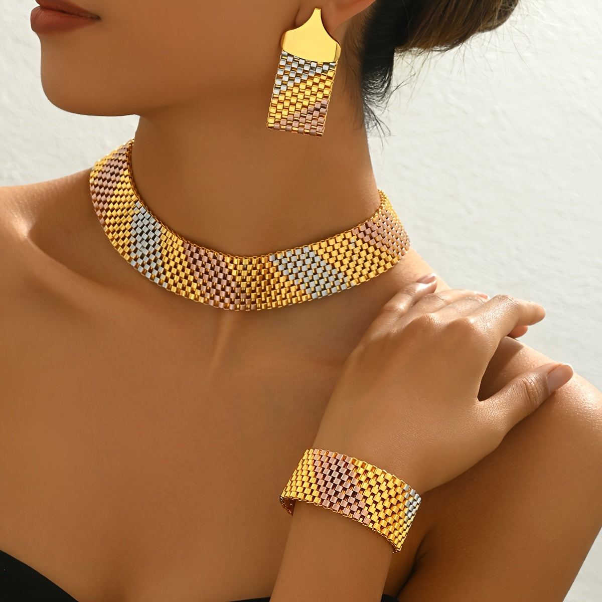 Ayollar uchun vintage oltin bilan qoplangan zargarlik buyumlari to'plami: taqinchoq, sirg'alar, bilaguzuklar, to'ylar va Ramazon uchun