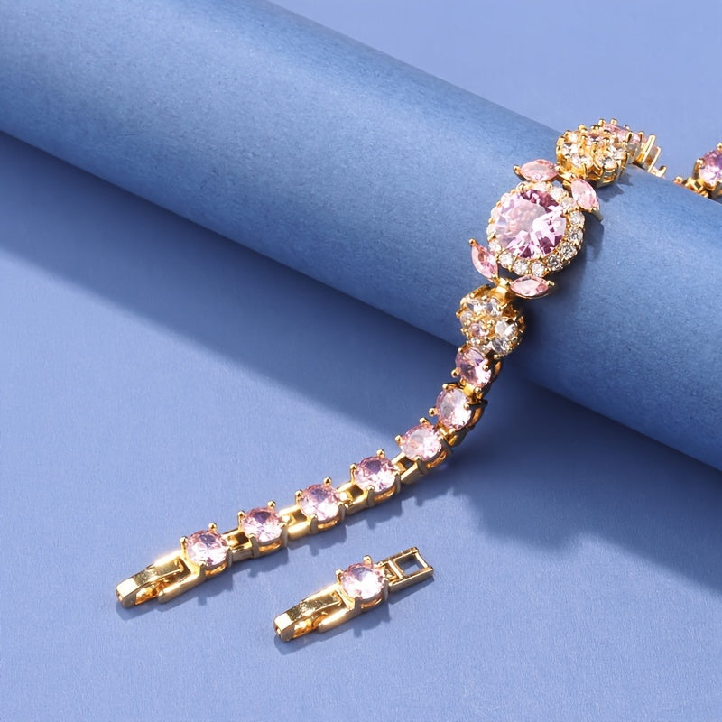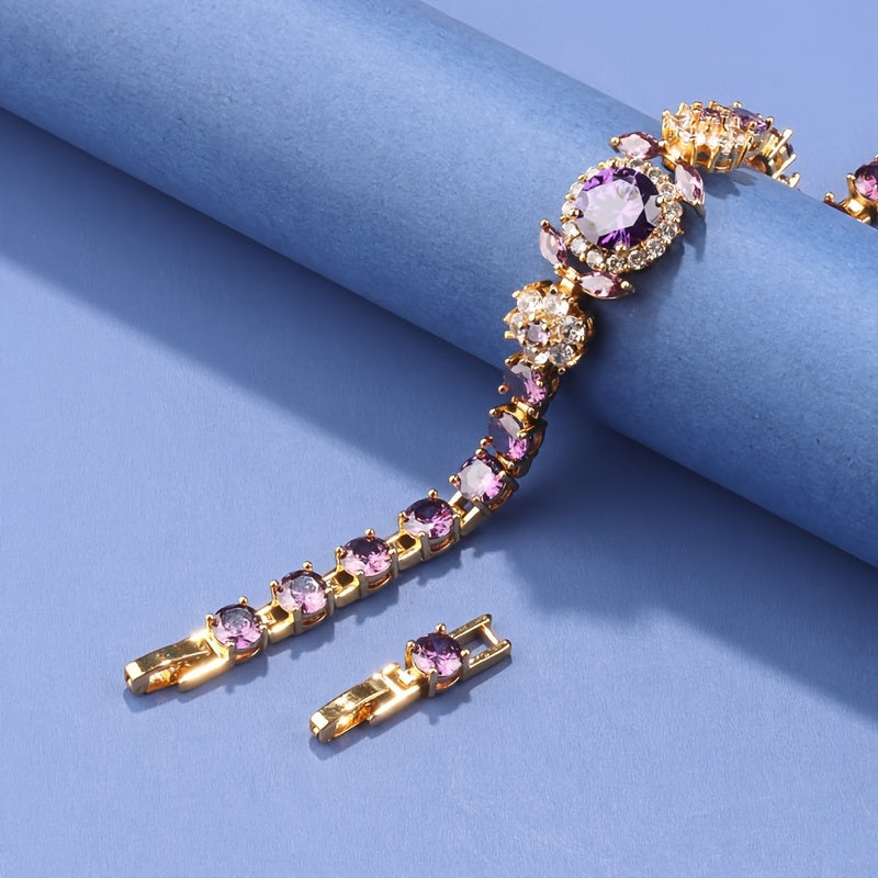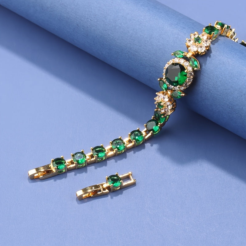 Zarif Vintage Ayollar Bilaguzuklar To'plami, Sintetik Toshlar, 18K Oltin Qoplangan Mis Zanjir, Yuqori Sifatli Zirconia Mozaika Detallari, To'ylar va Partiyalar uchun Mukammal, Ideal Rojdestvo Hediye, Ko'p Maqsadli Aksessuar - Bitta Qism