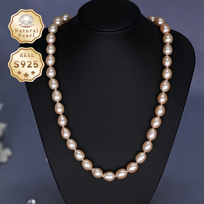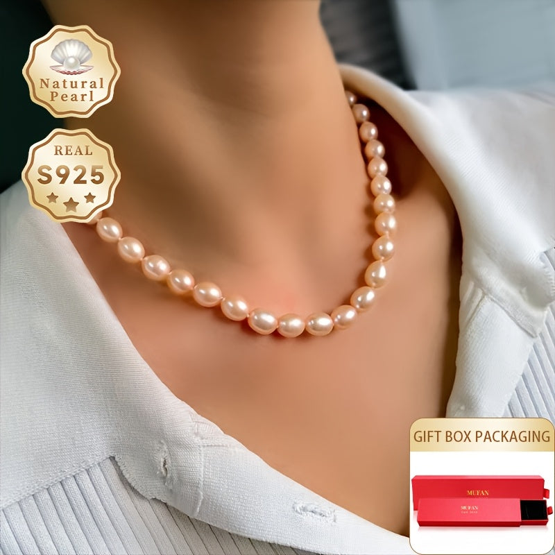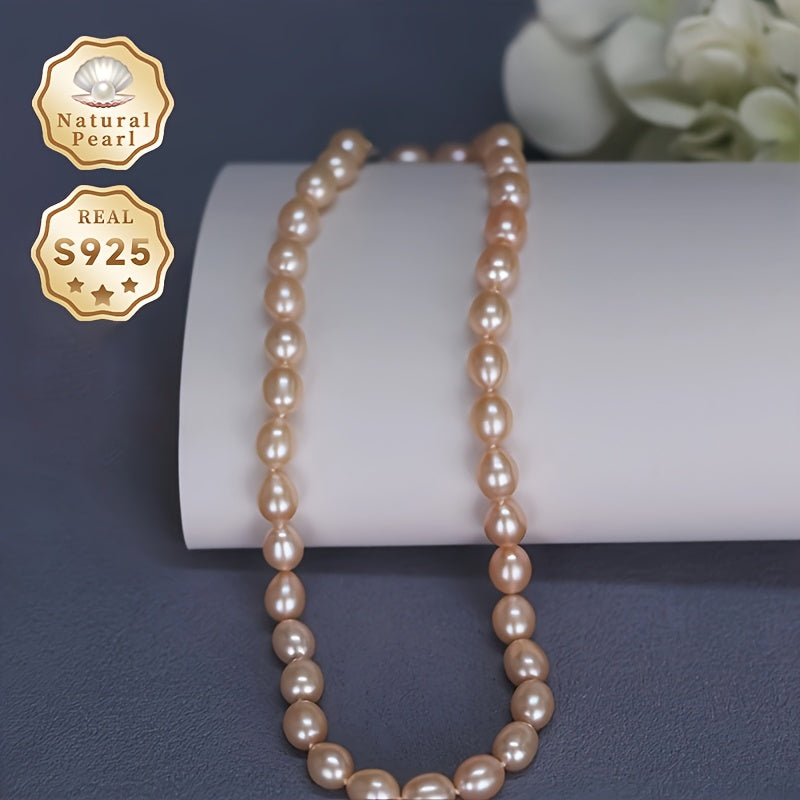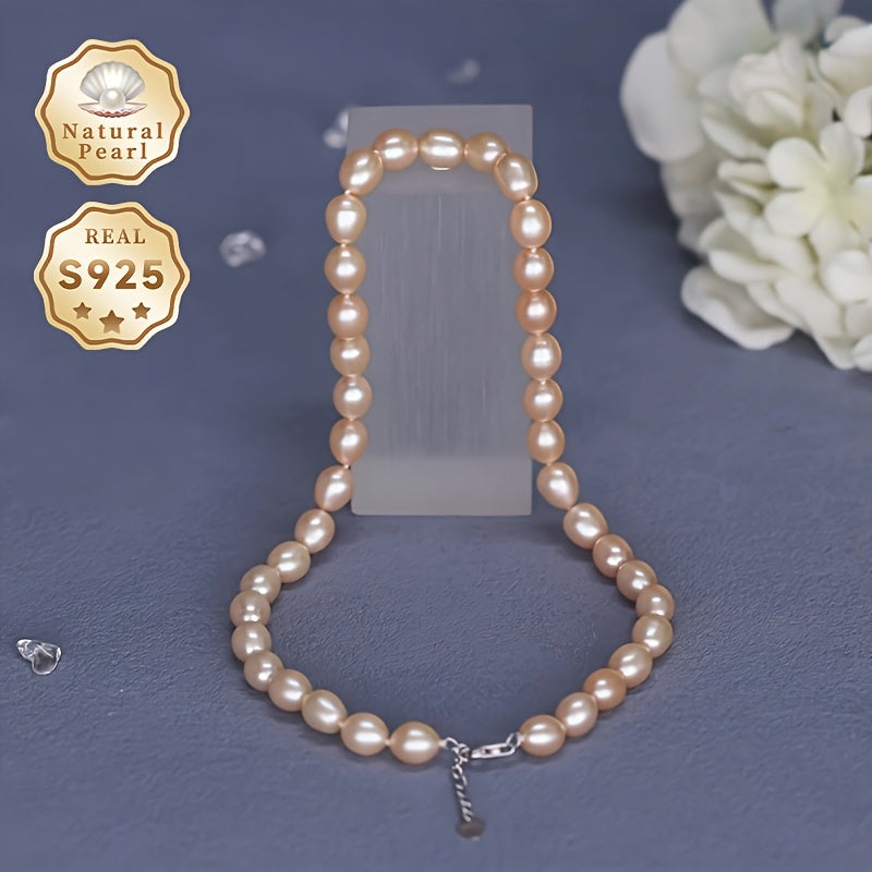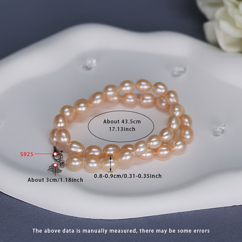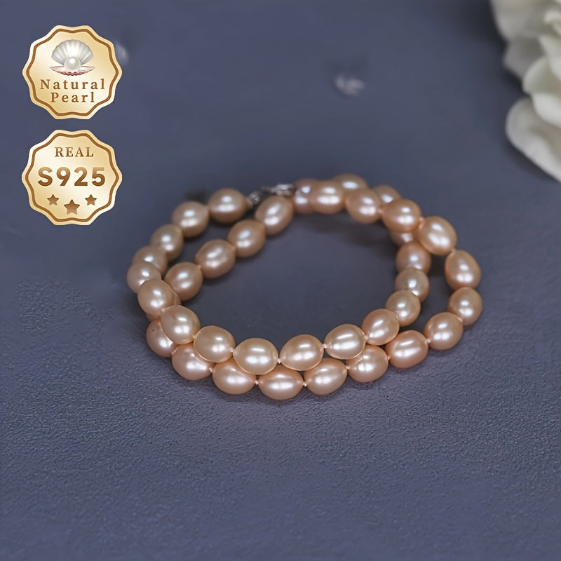 Zarif to'y aksessuari: MUFAN Vintage Cute uslubidagi tabiiy shirin suv marvaridi bilaguzuk, S925 qopqoq, iyun tug'ilgan toshi, tabiiy pushti barok marvarid zanjiri, kundalik kiyish va sovg'alar uchun - 8-9mm marvaridlar, 38-42 dona