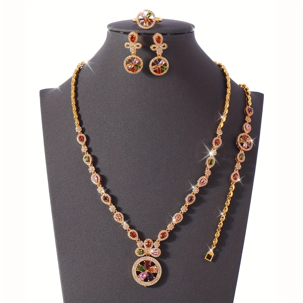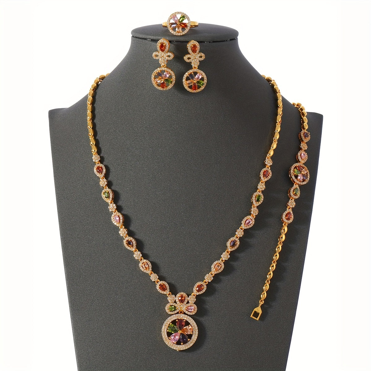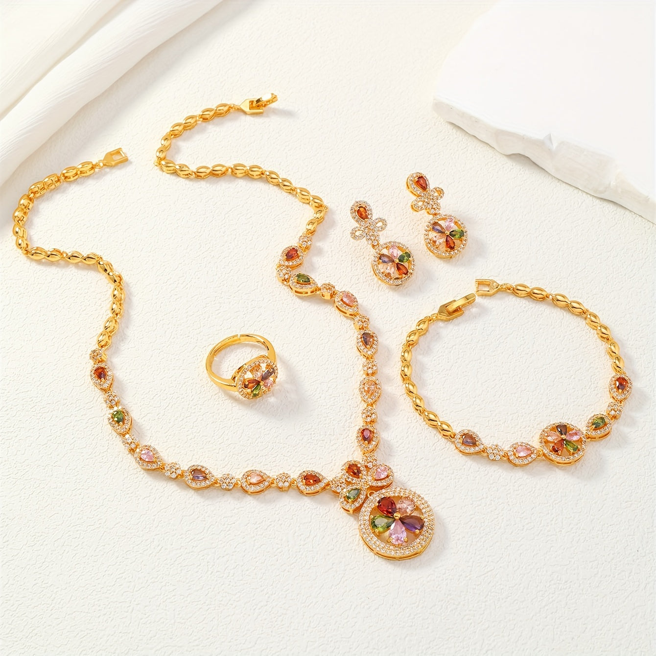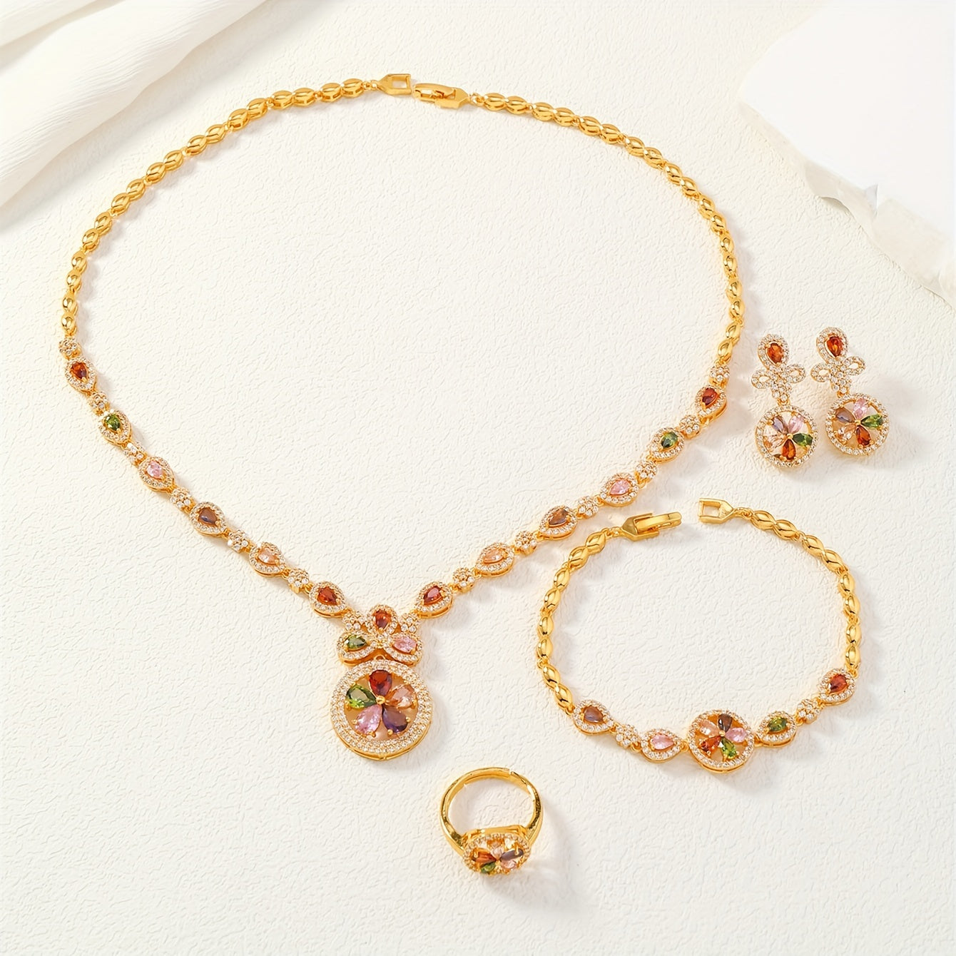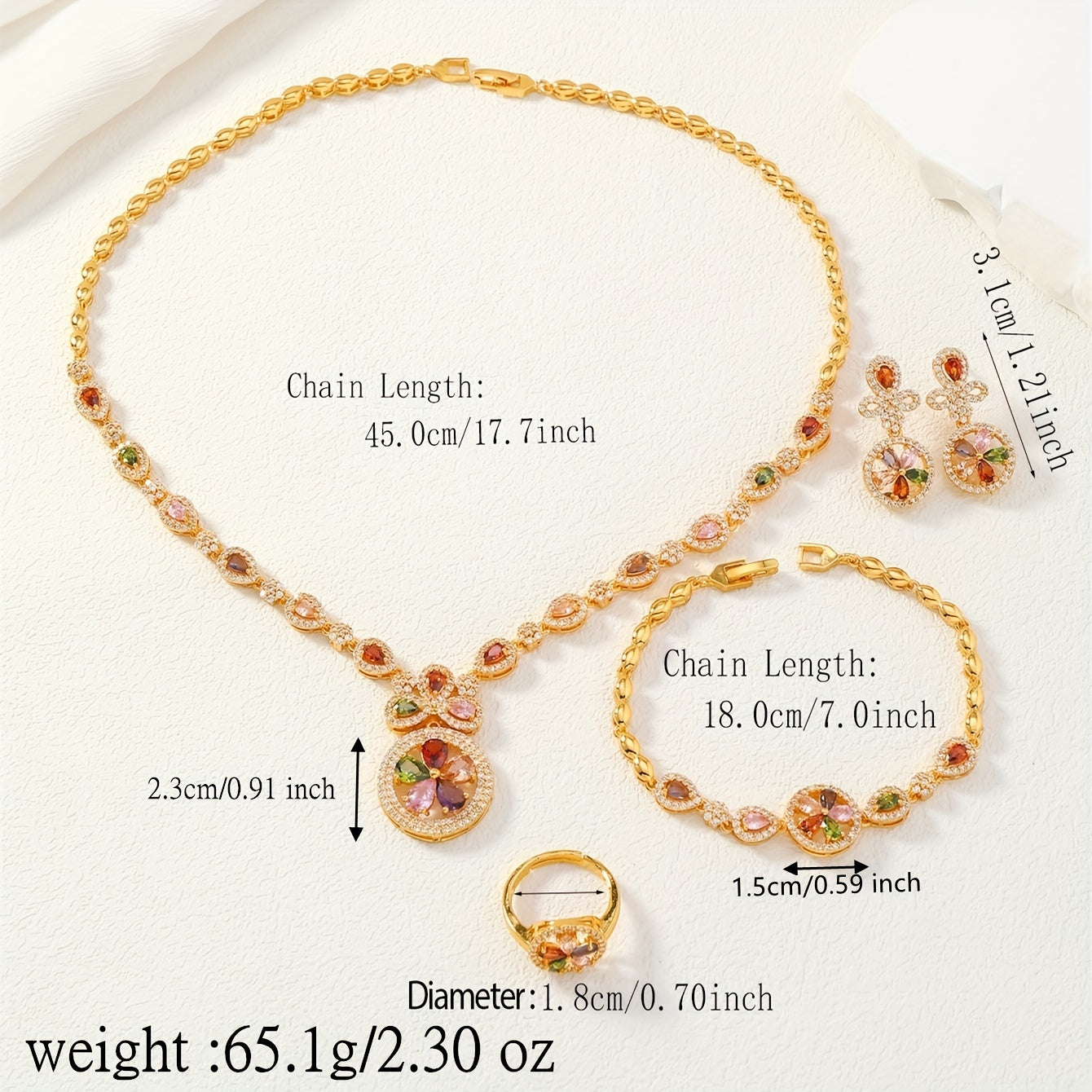 Ayollar uchun zargarlik to'plami 24K oltin bilan qoplangan mis, sun'iy zirkon bilan doira to'y banketi