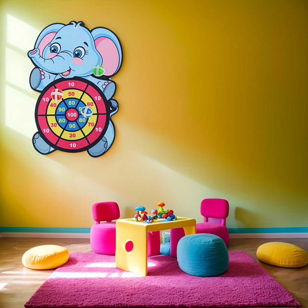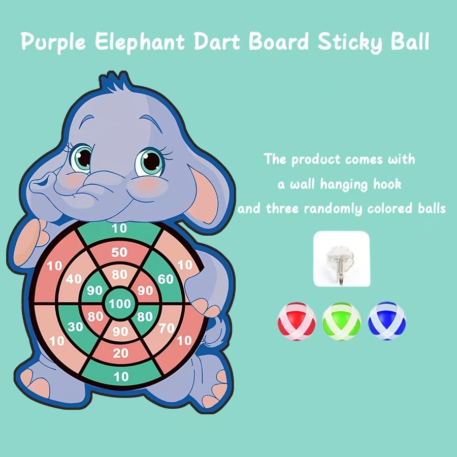 3 yoshdan oshganlar uchun fil shaklidagi yopishqoq dart taxtasi o'yin to'plami, qopqoq va 3 ta yopishqoq to'pni o'z ichiga oladi. Oila bilan interaktiv o'yin va tug'ilgan kun sovg'asi uchun mukammal, polyester materialdan, ko'k va binafsha rangda.