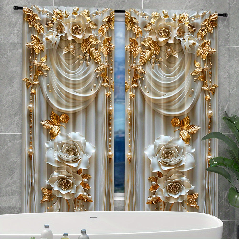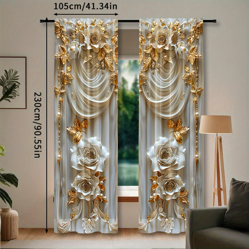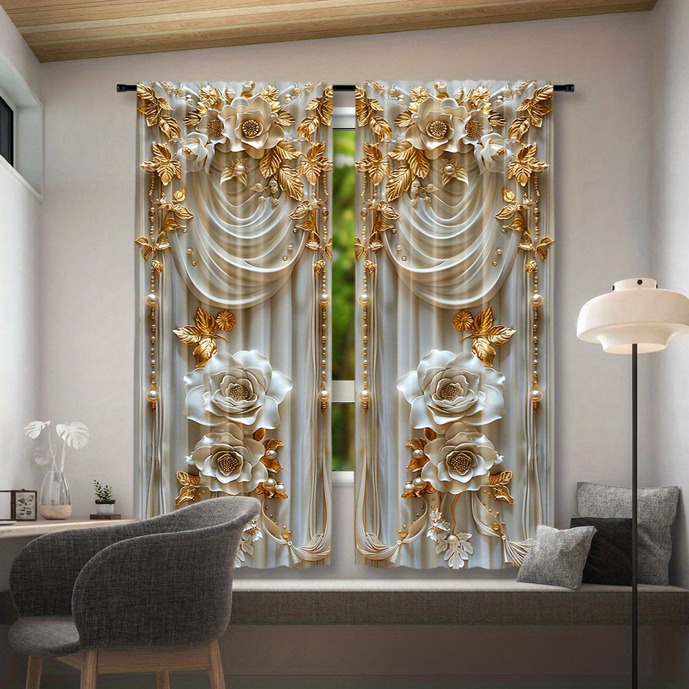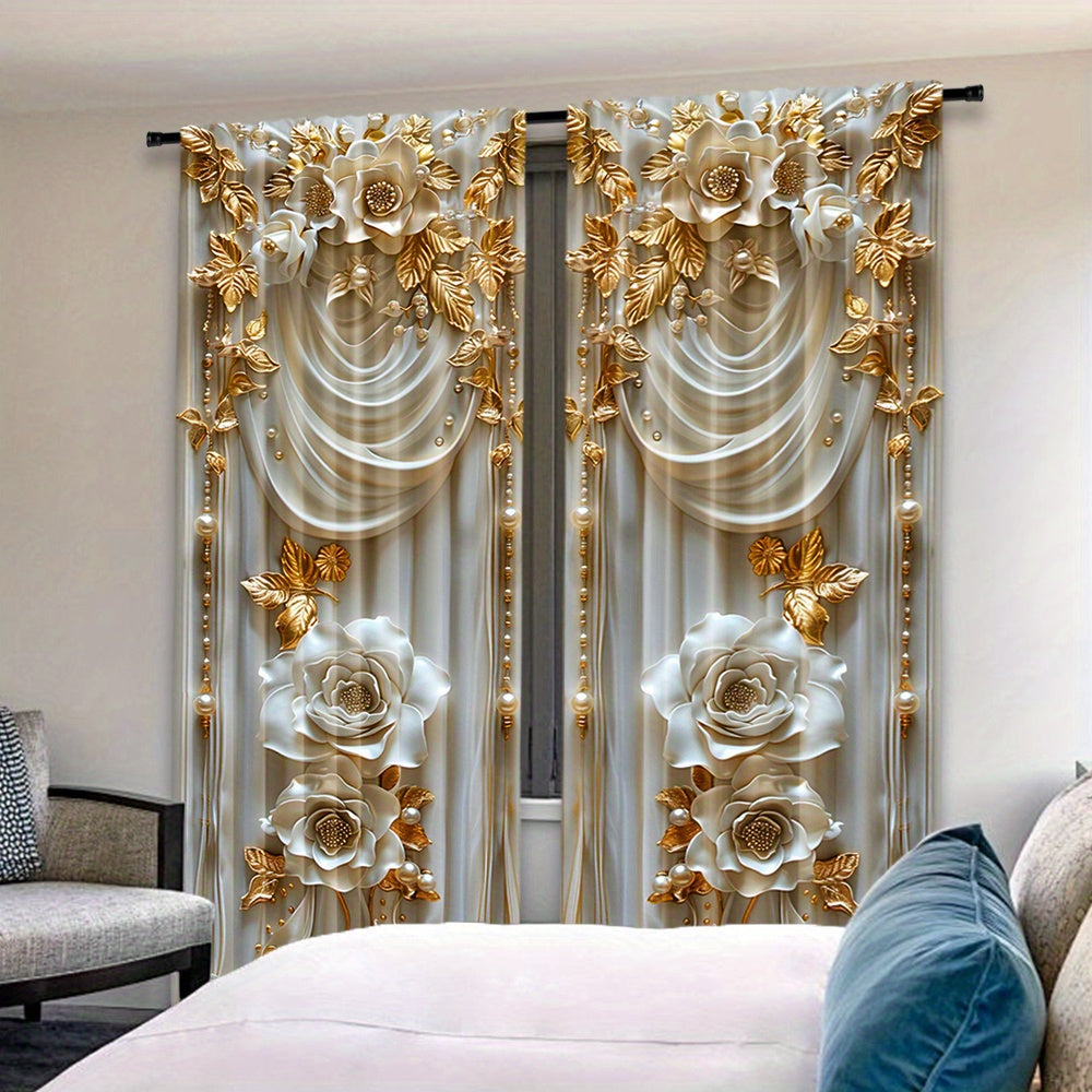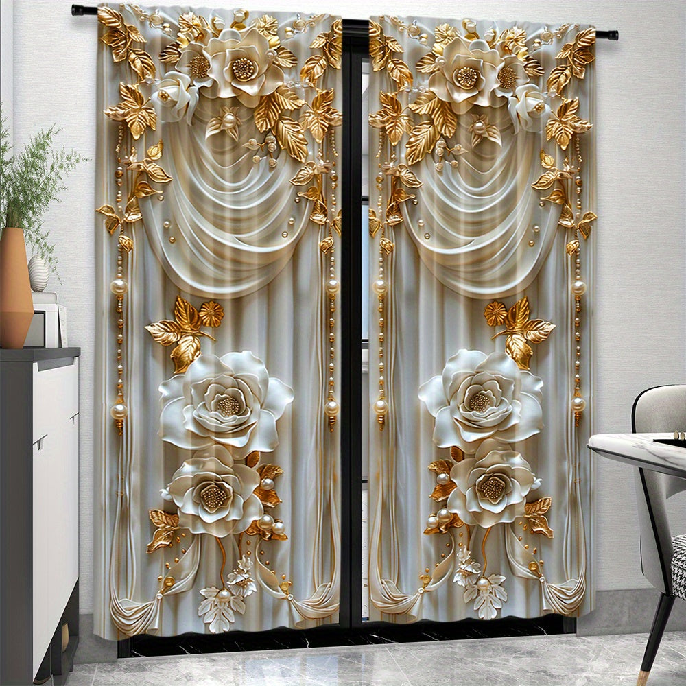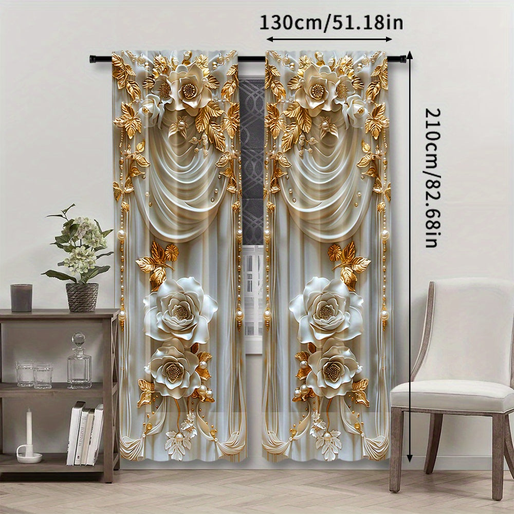 Yotoqxona uchun 2 ta polyester ponjey pardasi to'plami, bosilgan sariq gul naqsh bilan