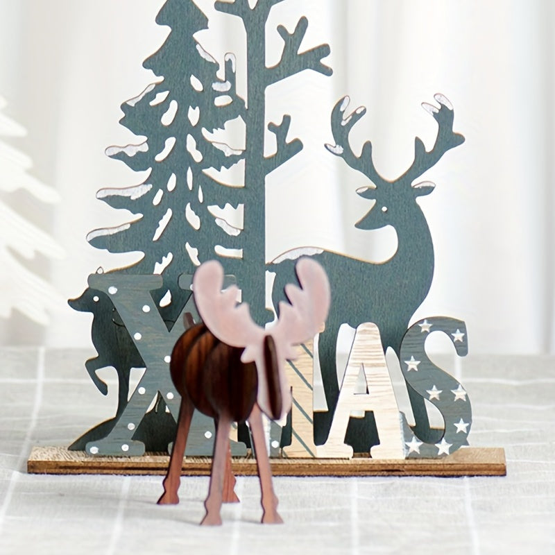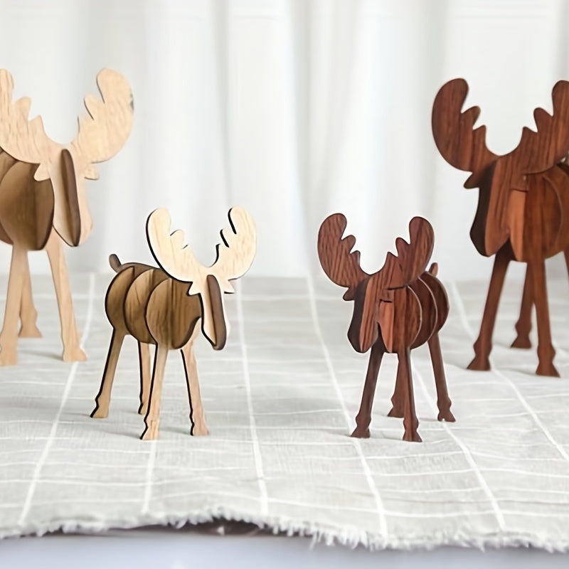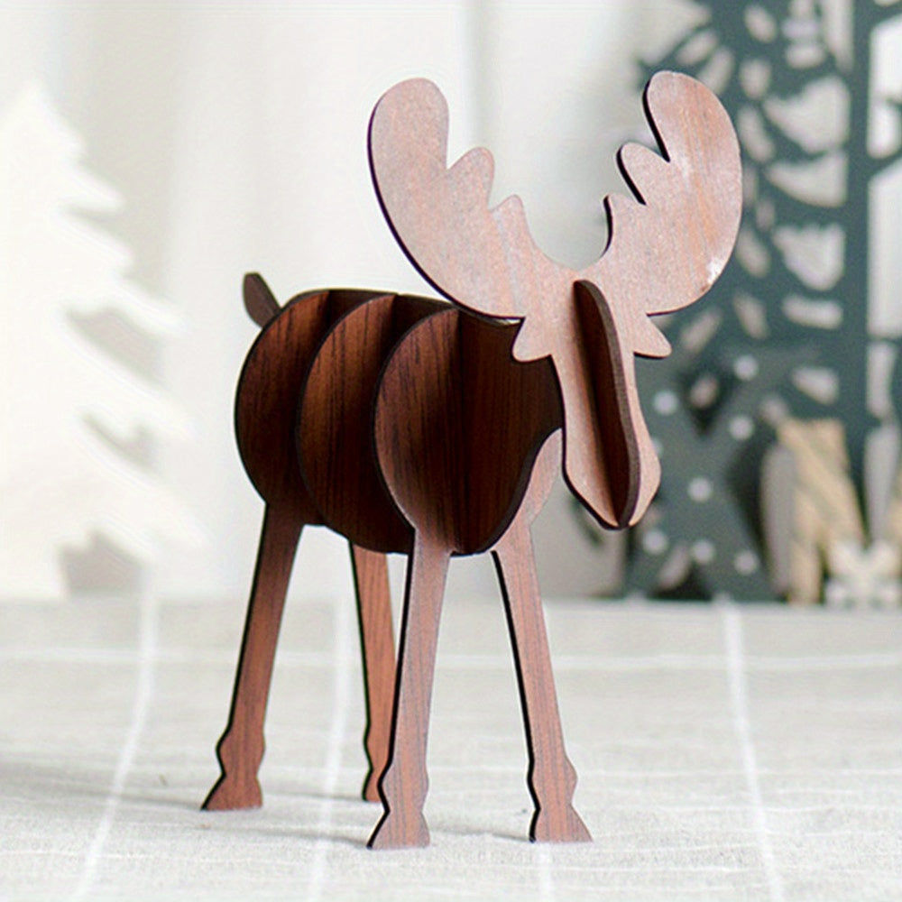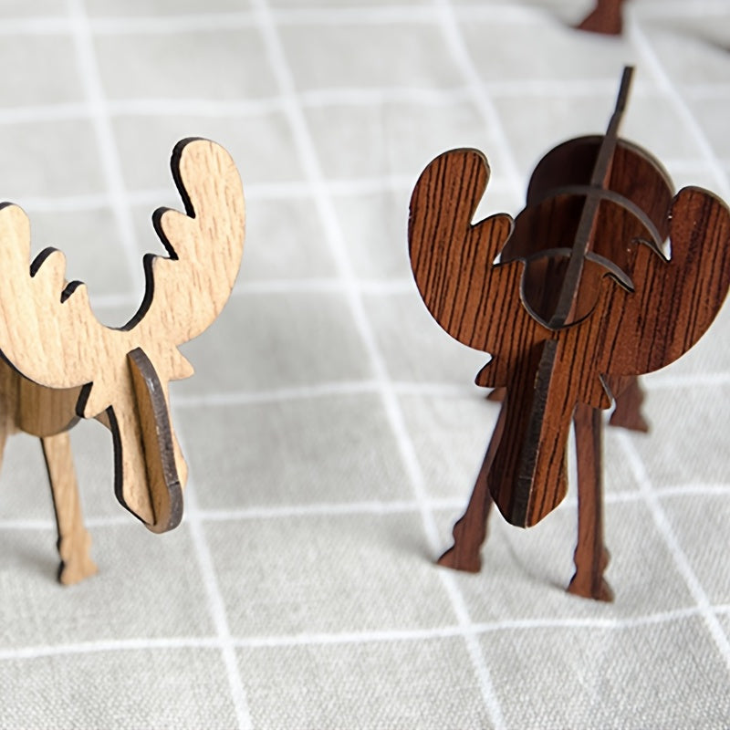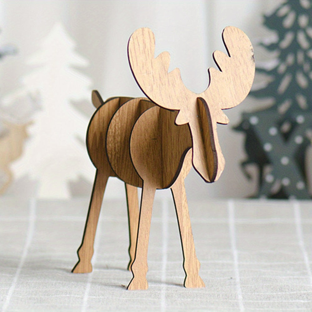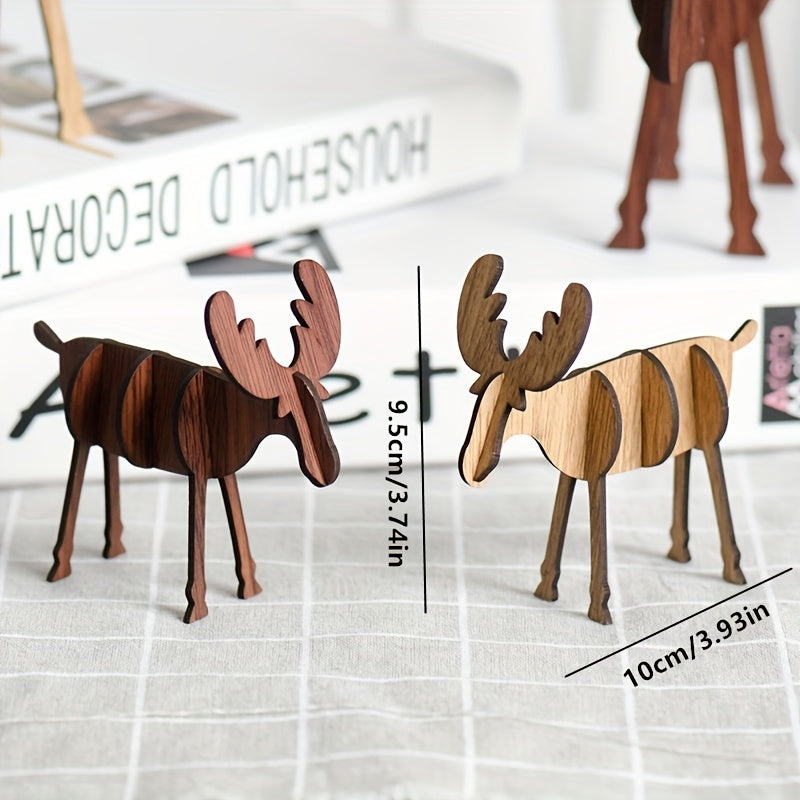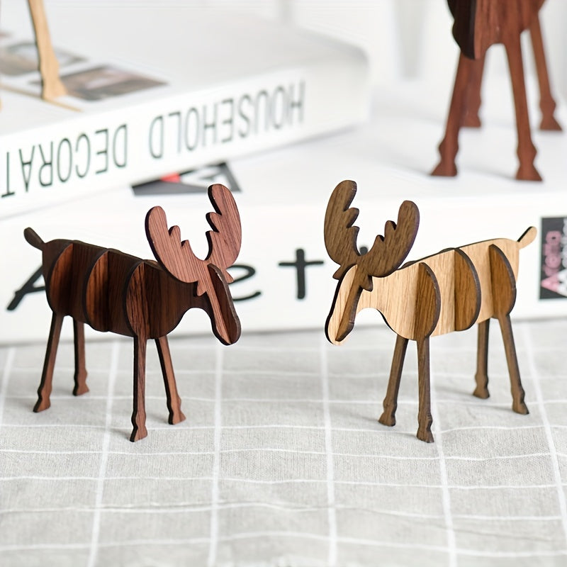 Yangi yil uchun elk yashash xonasi ish stoli bezaklari, bayram bezaklari va partiya bezaklari uchun oddiy zamonaviy yog'och mini kiyik ornamentlari.