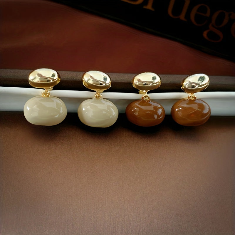 Retro elegant uslubida oval shakldagi emal quloq uzuklari, 14K qoplangan misdan tayyorlangan - kundalik tasodifiy kiyim uchun mukammal.