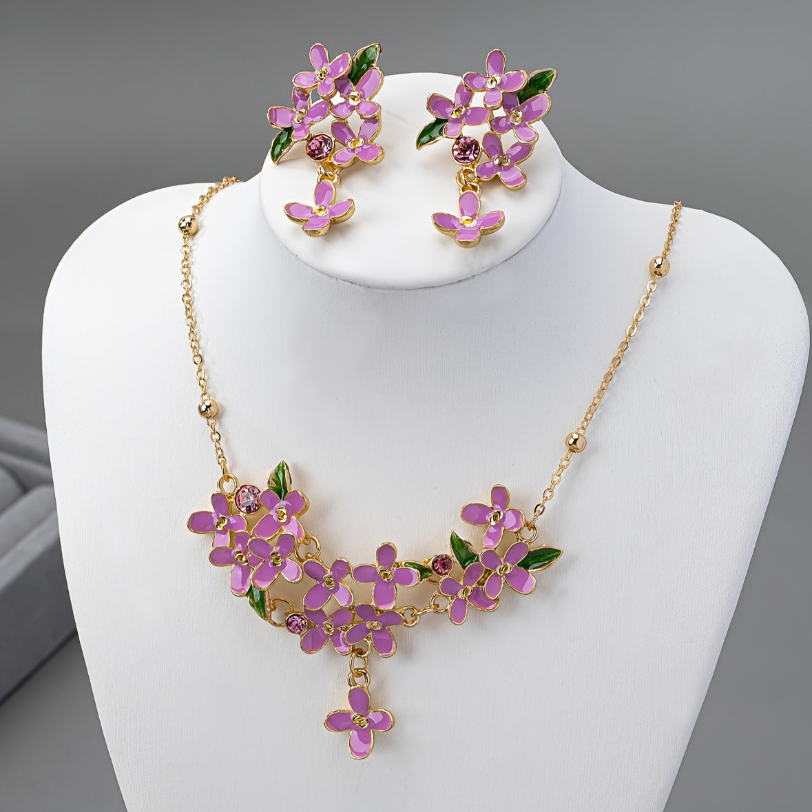 Jozibali Lilak Gul Emal Zargarlik To'plami - Marjon va Quloqni, Tug'ilgan kun bayramlari, Romantik uchrashuvlar, Ijtimoiy yig'ilishlar va Zamonaviy Har kuni kiyish uchun ideal