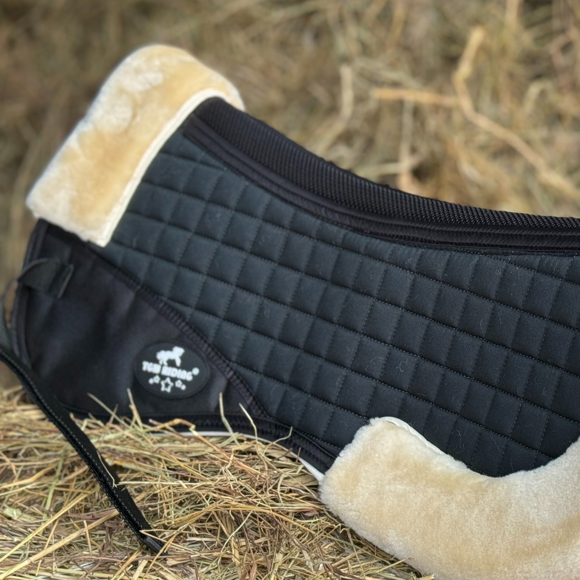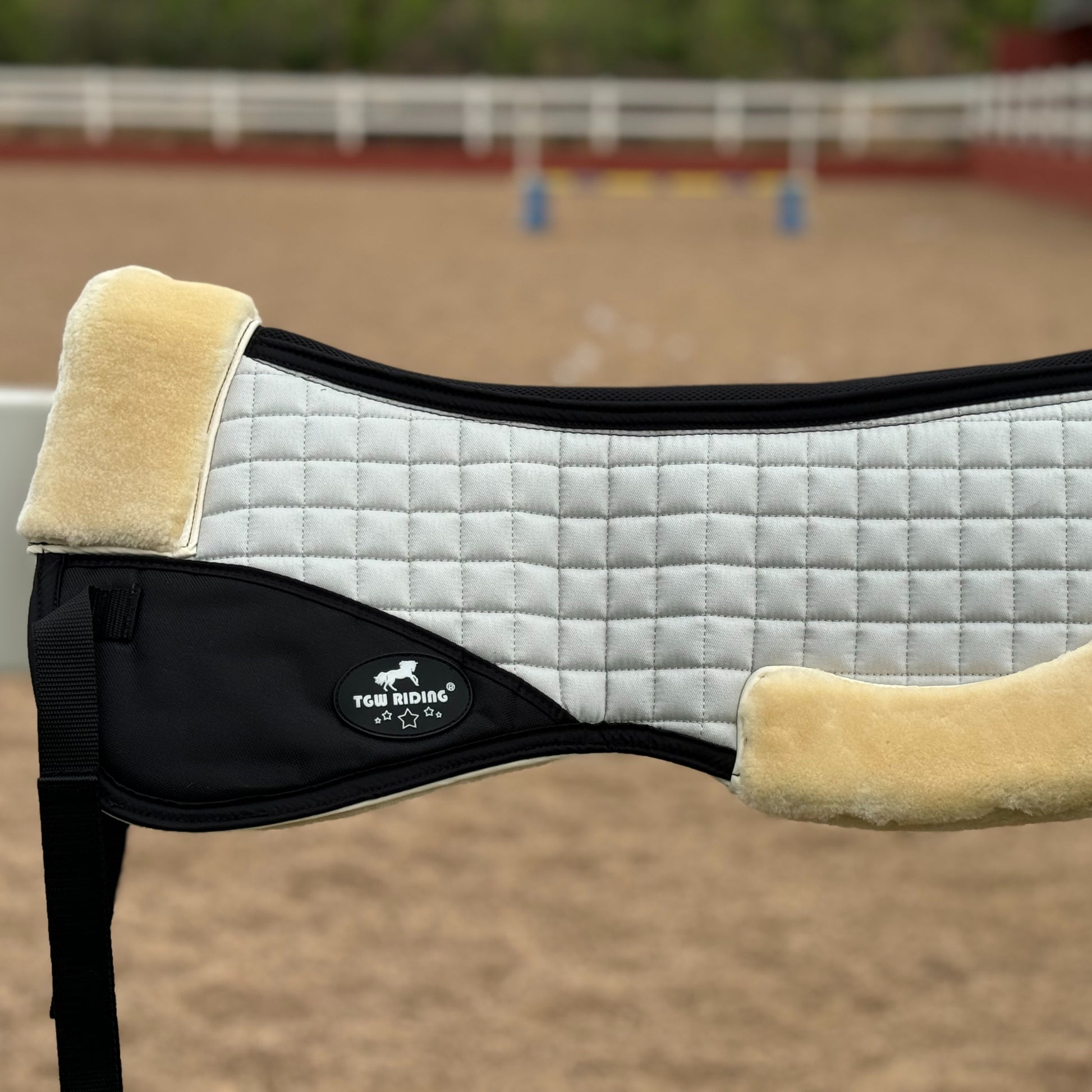 "Ingliz otining yarmi pad, 100% to'qilgan mato tashqi qismi va shaklni saqlovchi ko'pik qo'shimchasi bilan, oson tozalanadigan qalin, yumshoq, to'kilmaydigan sintetik qo'y junidan iborat."