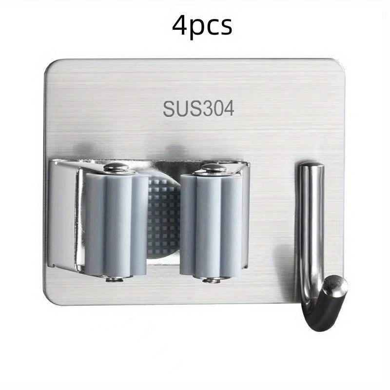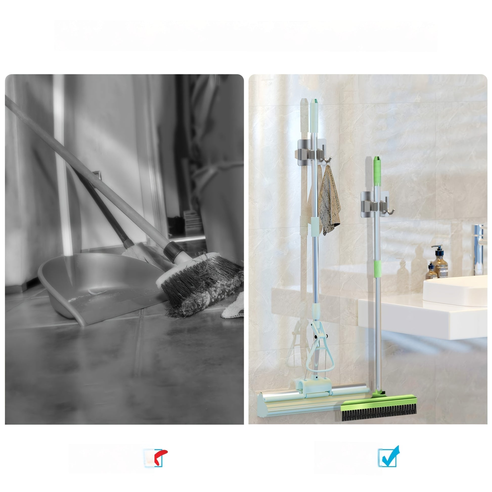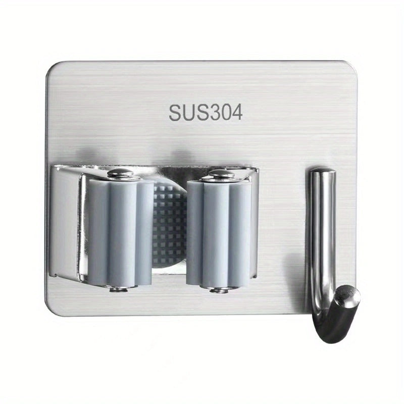 Ushbu burgusiz zanglamaydigan po'latdan yasalgan mopa va supurgi ushlagich bilan oshxonangizni yaxshilang - devorga o'rnatiladigan saqlash tokchasi