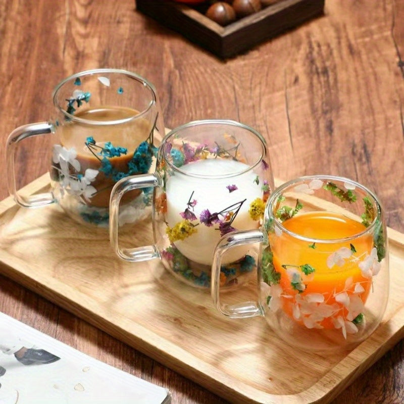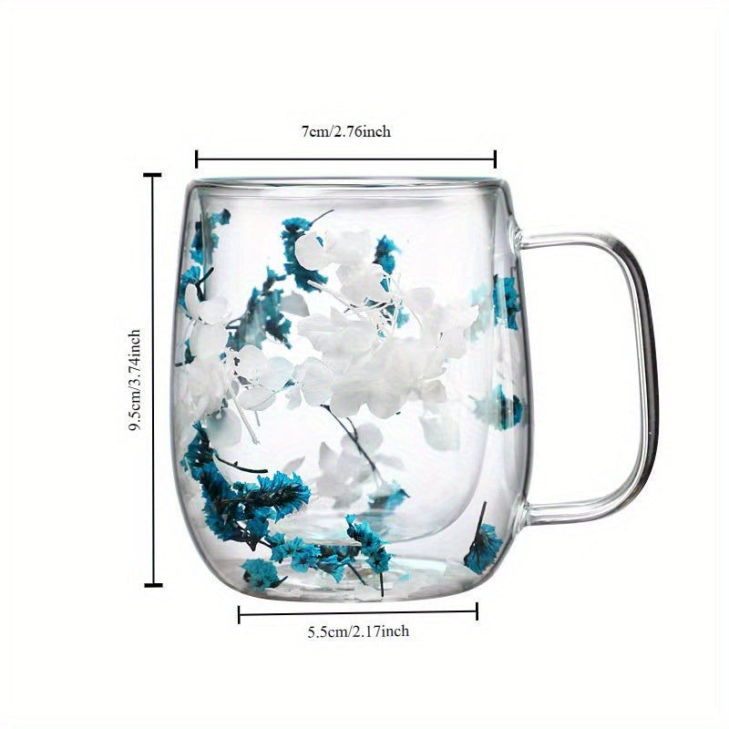 Sevimli issiq yoki sovuq ichimliklaringizni haqiqiy gullar dizayni bilan bezatilgan, zamonaviy va mustahkam ikki devorli shisha qahva piyolasi bilan bahramand bo'ling. Uyda yoki ofisda foydalanish uchun mukammal.
