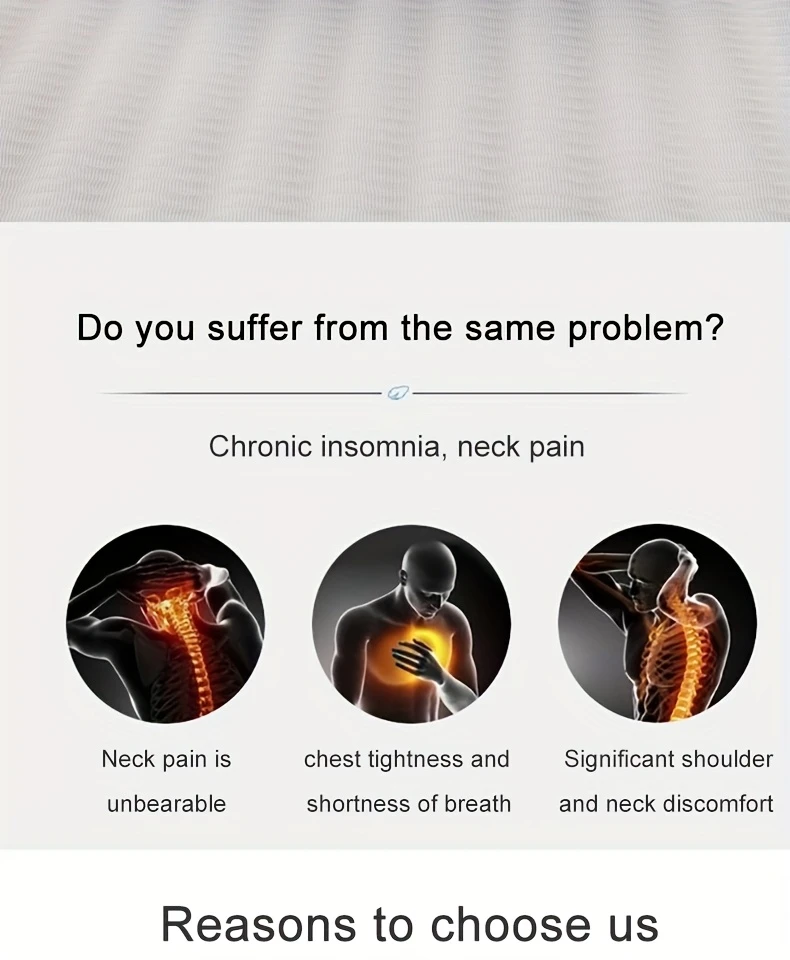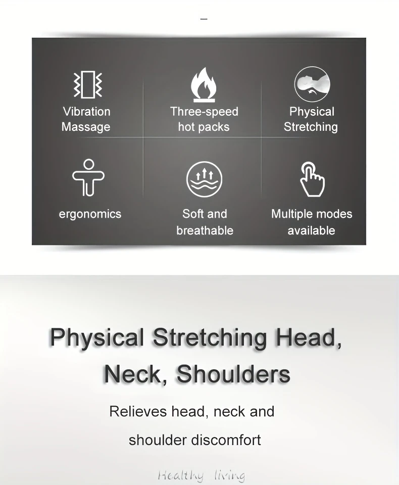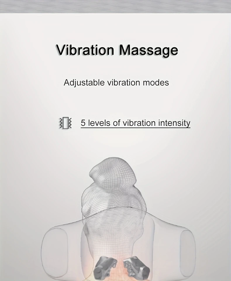 Ergonomik bo'yin yostiq, isitiladigan umurtqa massajchisi, vibratsiya, qayta zaryadlanadigan batareya va chuqur dam olish va uyqu yordam uchun bo'yin qo'llab-quvvatlash.