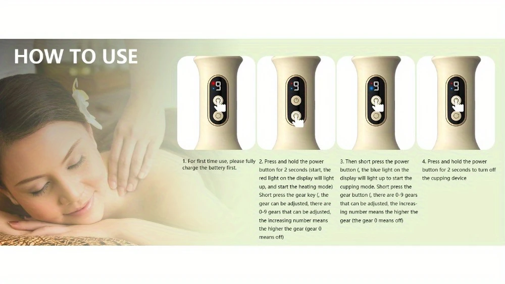 Ergonomik elektr massaj asbobi, 9 tezlik darajasi va mustahkam so'rish kuchi bilan, qayta zaryadlanadigan batareya va USB zaryadlash. Shaxsiy foydalanish uchun ajoyib va turli tadbirlar uchun ideal sovg'a.