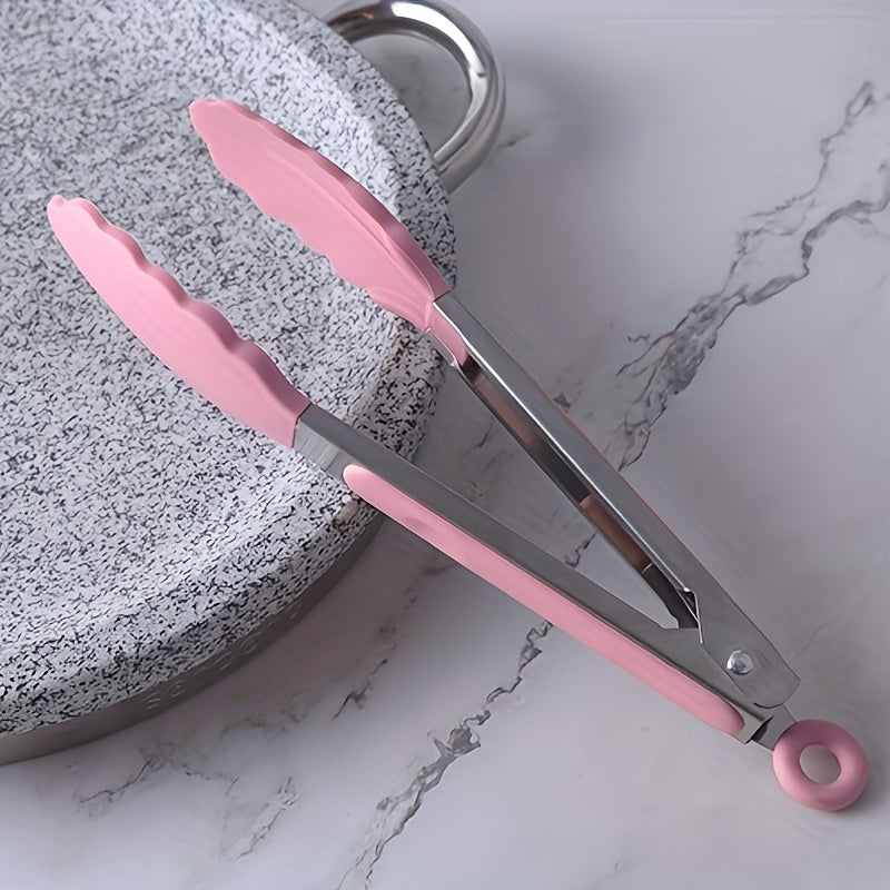Xavfsiz pishirish va BBQ uchun ergonomik silikon boshli stainless steel oziq-ovqat tongs.