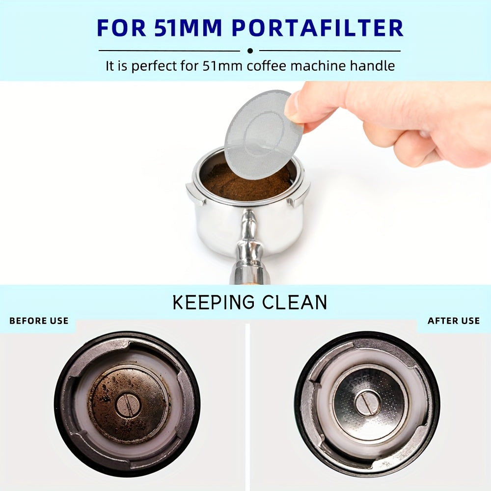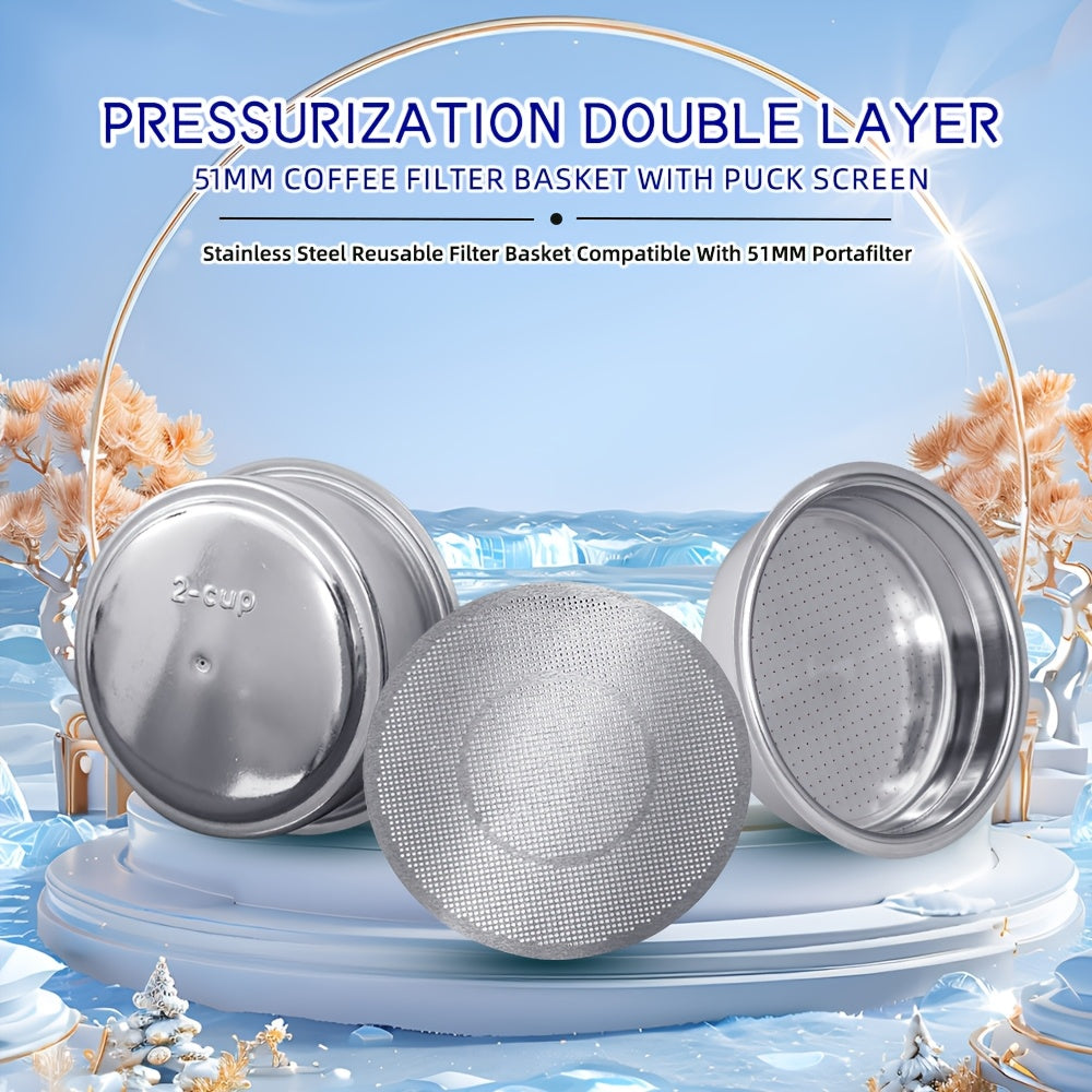 Espresso Filtr Savati - Ikki Qavatli Paslanmaydigan Po'lat, 51mm, Pressizlangan Puk Ekrani bilan. Gourmet Qahva Pishirish uchun Ikki Qavatli Portafilter O'rnini Bosuvchi.