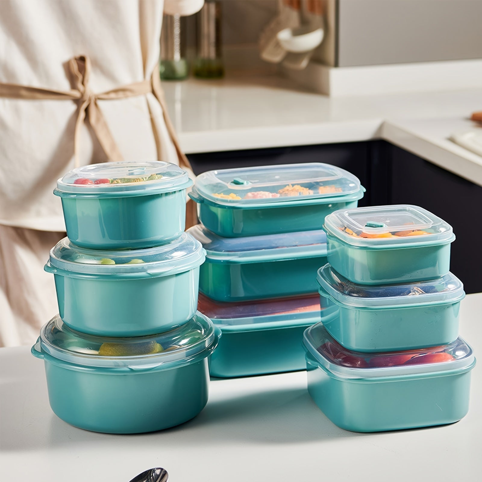 Meva, sabzavot va go'sht uchun 3 ta mikroto'lqinli pechga mos keladigan oziq-ovqat saqlash konteynerlari to'plami, qopqog' bilan