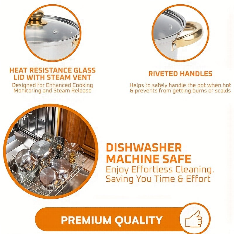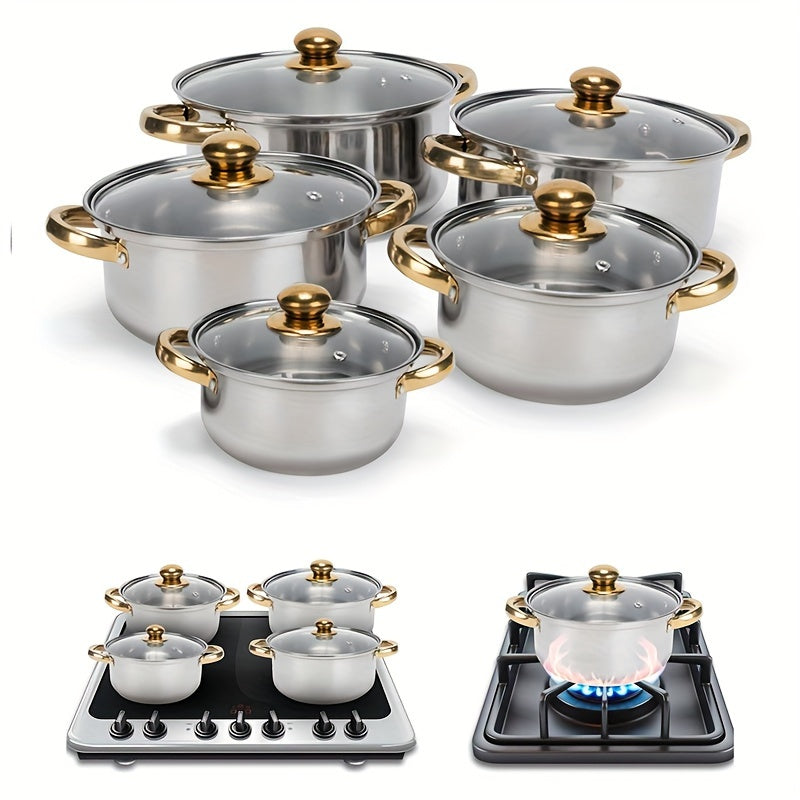 Barcha pech turlari uchun 10 ta zanglamaydigan po'latdan yasalgan idishlar to'plami, qopqog'lar bilan