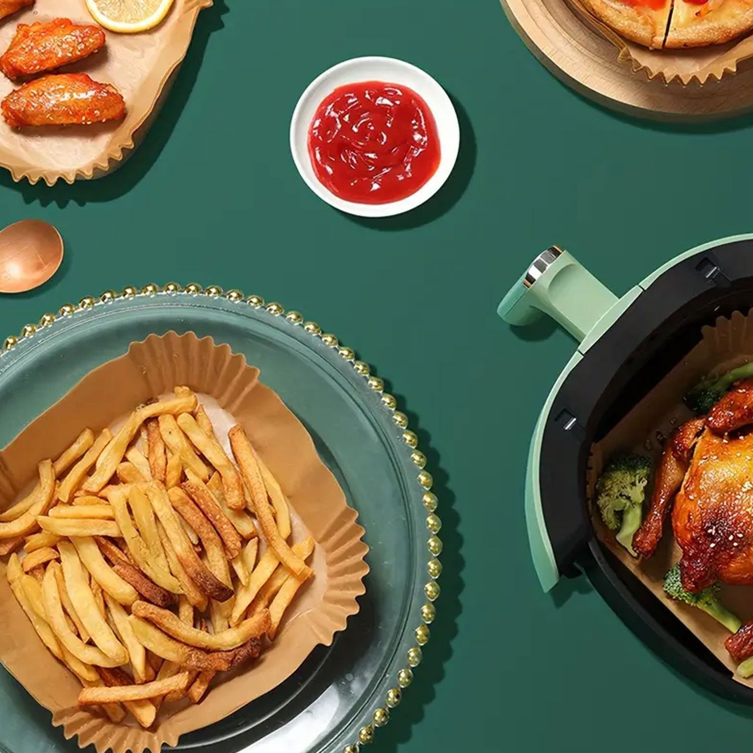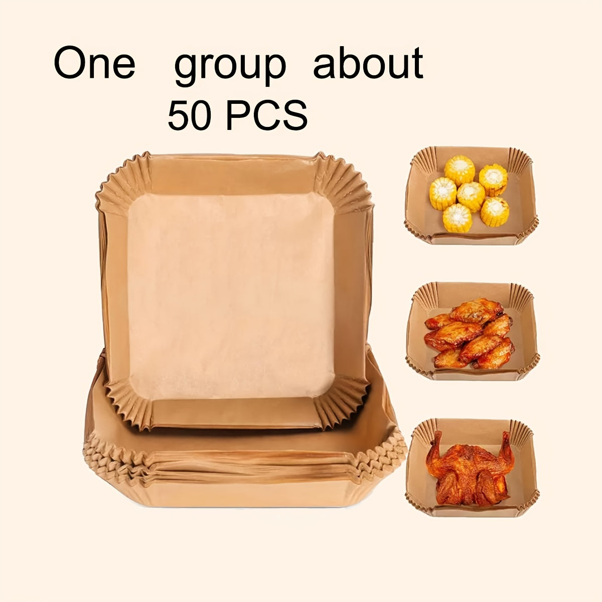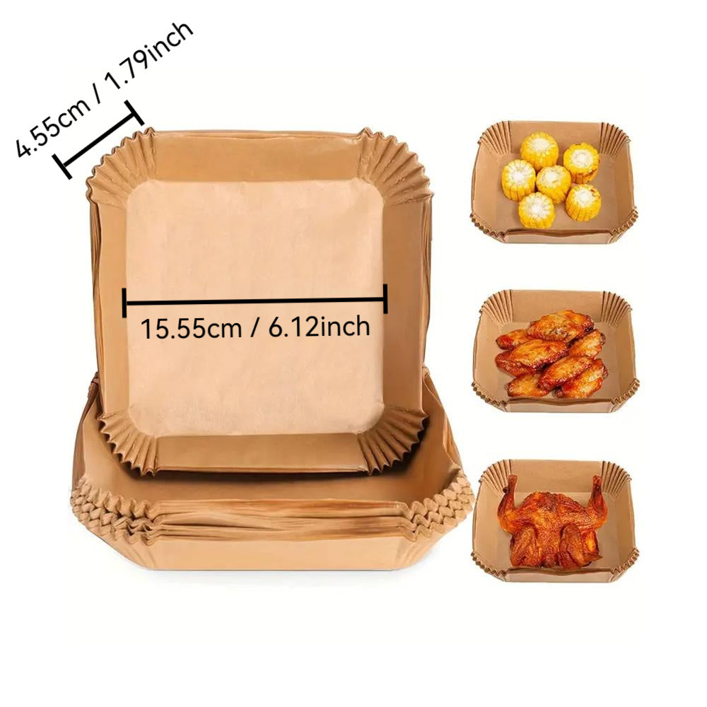 Asosiy oshxona asboblari: Sog'lom qovurish uchun kvadrat havo qovurish qog'ozi, oziq-ovqat darajasidagi yopishqoq bo'lmagan qog'oz, qayta ishlatiladigan va tozalash oson