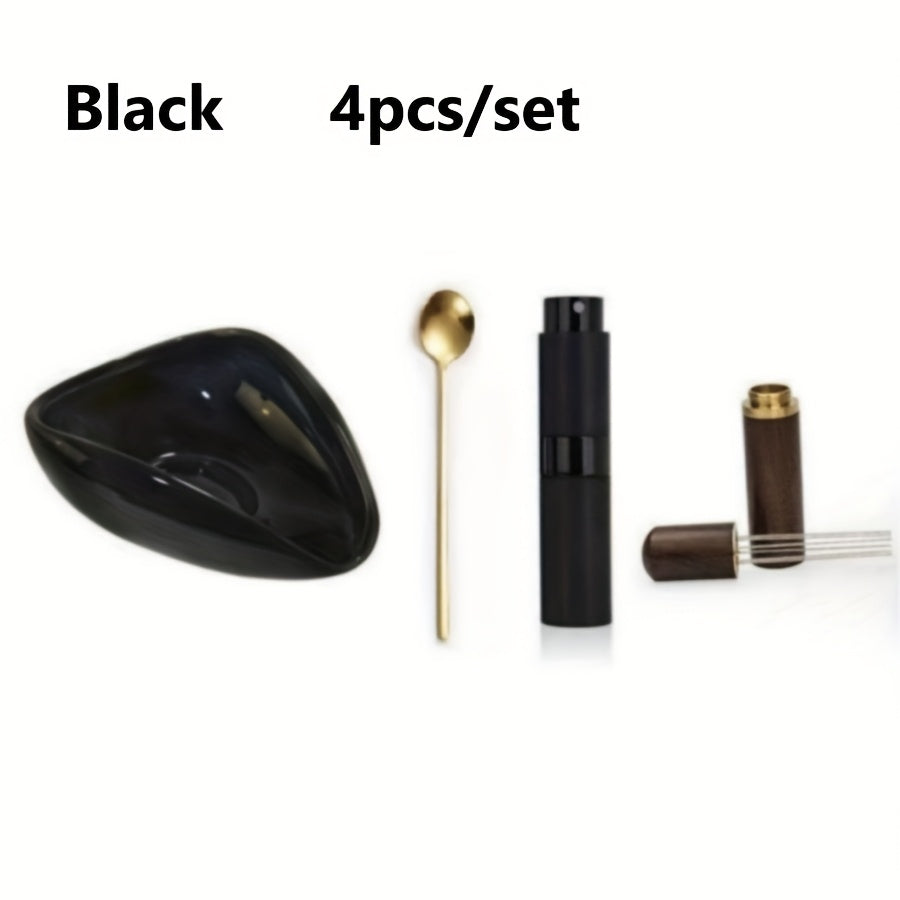 Kofe aksessuarlar to'plami: keramika dozaj kubogi, sprej shisha, aralashtirish qoshiq, qora yoki oq variantlar