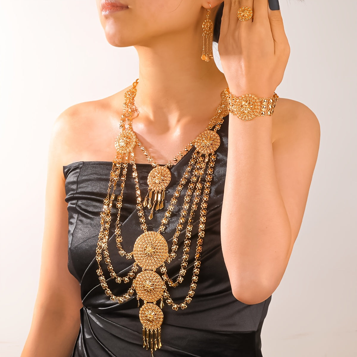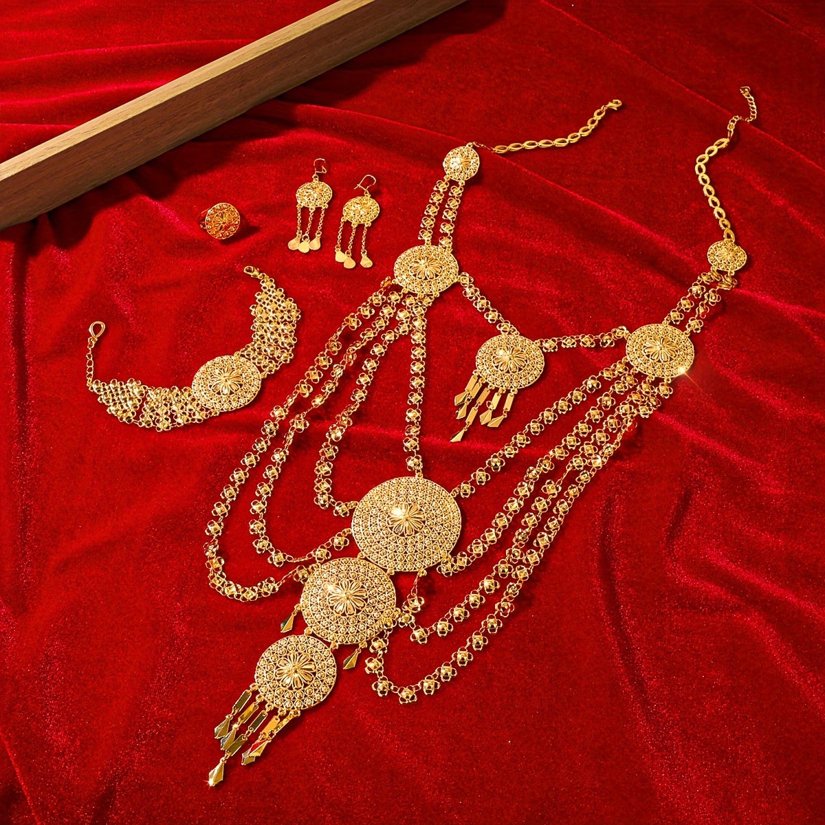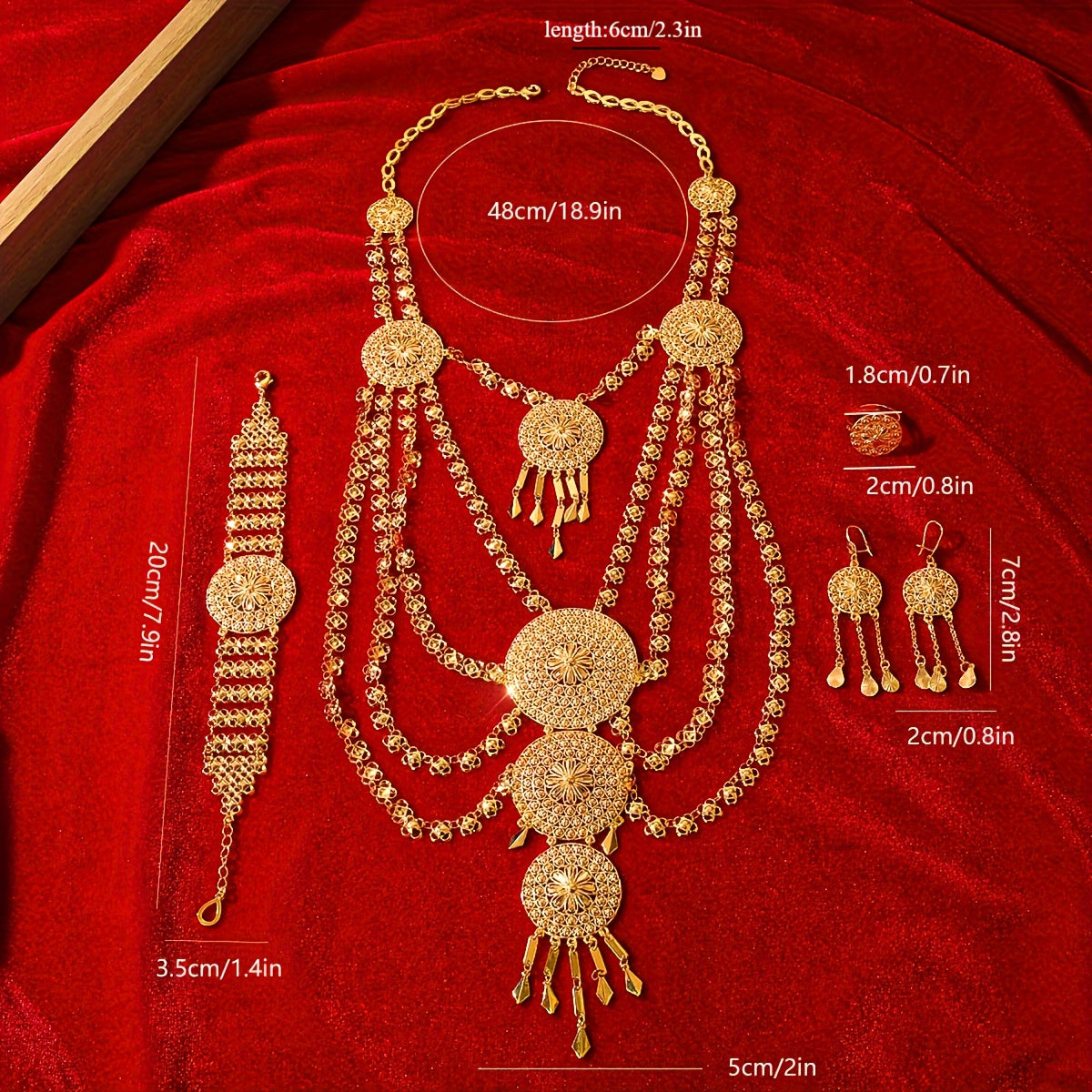 Ayollar va qizlar uchun oltin misdan tayyorlangan Sharqona ta'sirlangan zargarlik buyumlari to'plamlari