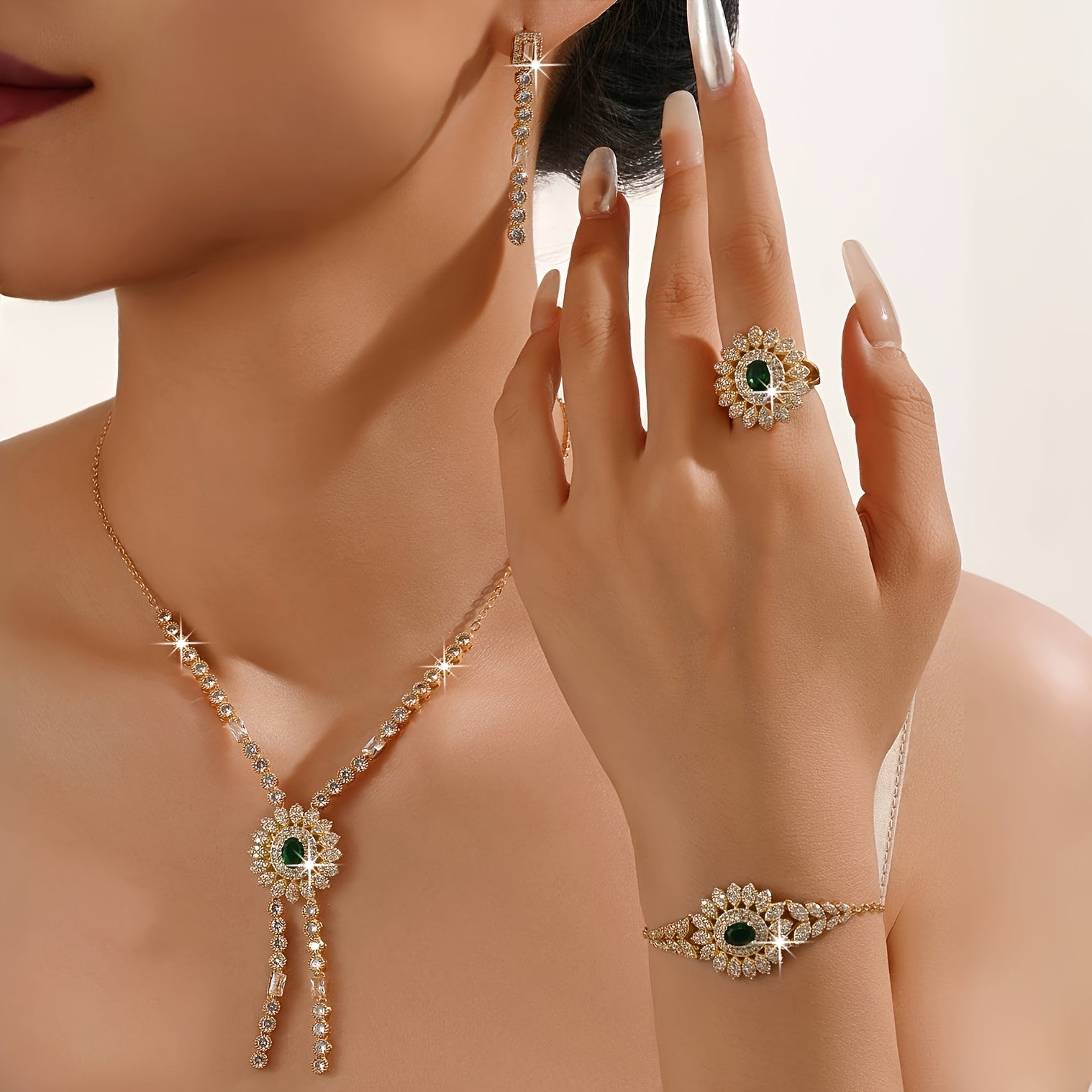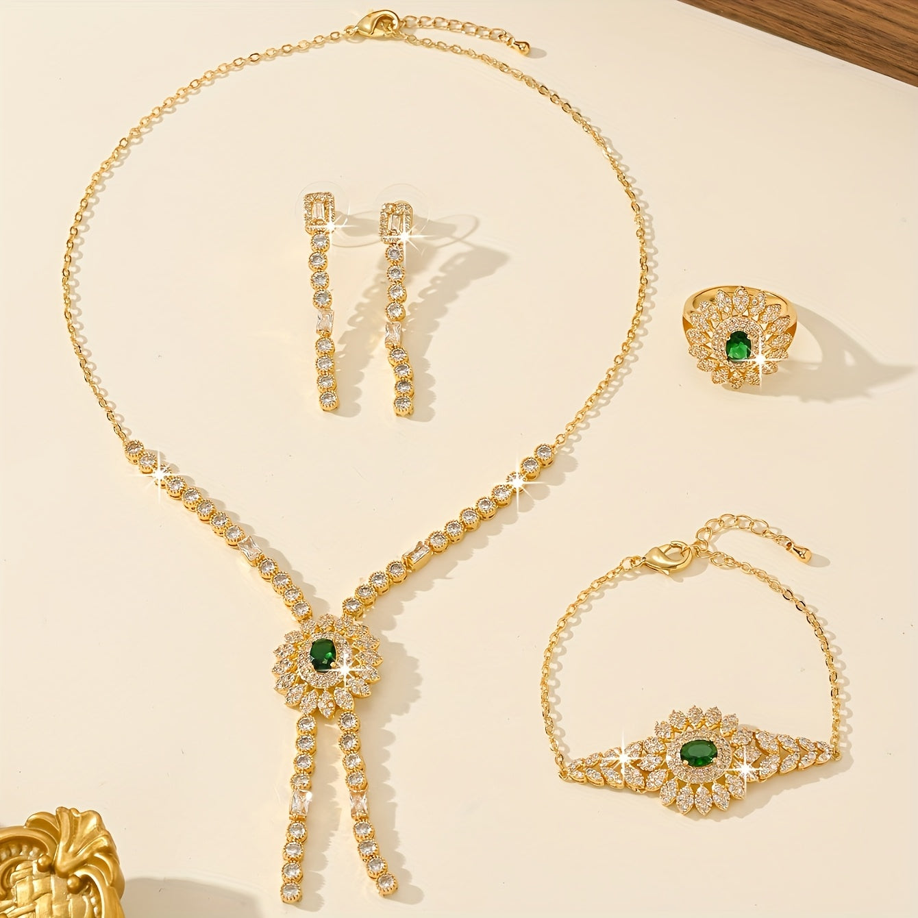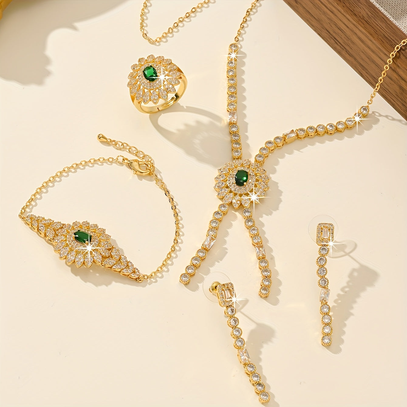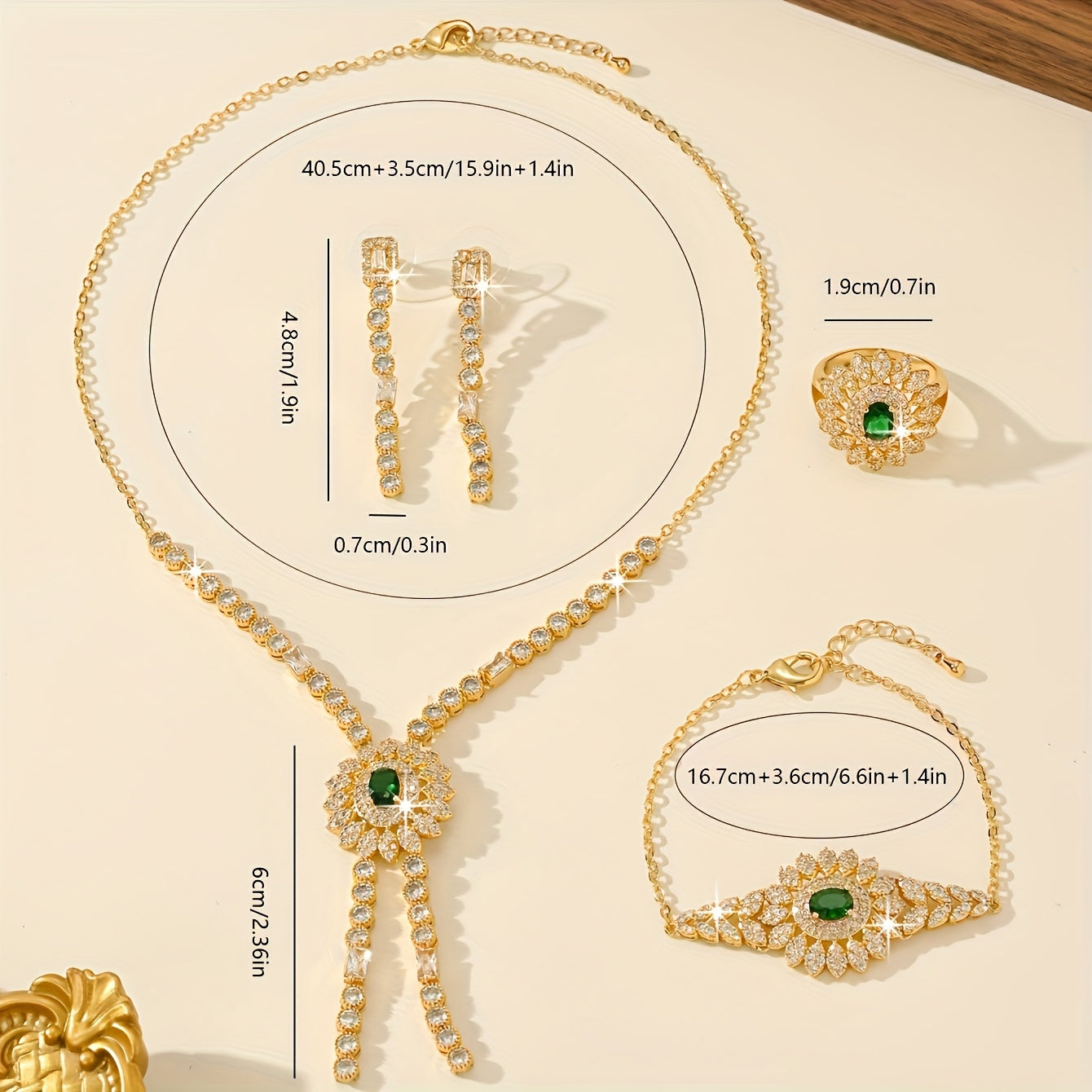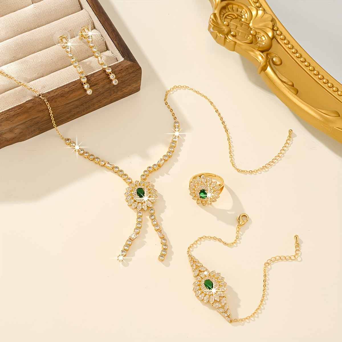 Zarif 5-qismli Poyabzal Qizil Tasmali To'y Zargarlik To'plami, Kubik Zirkoniya bilan bezatilgan - To'ylar va Har kuni Nafislik uchun Zamonaviy Marjon, Quloq uzuklari, Halqa va Bilaguzukni o'z ichiga oladi.