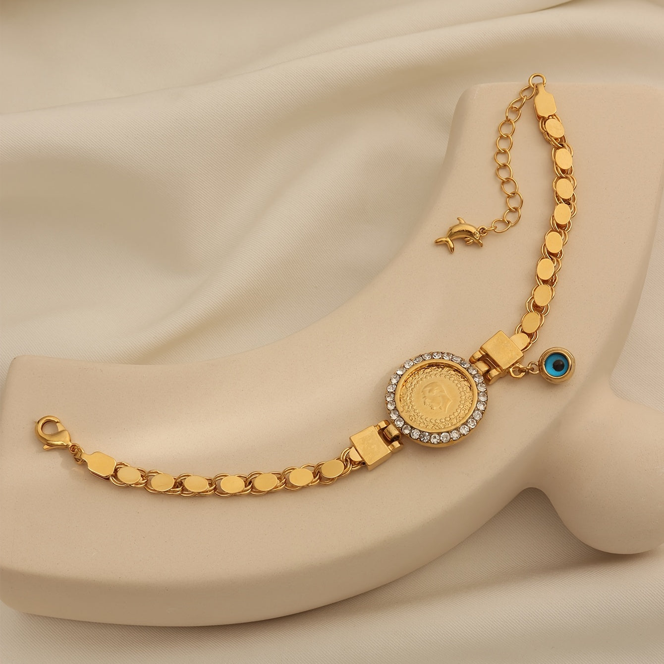 Zarif Vintage 24K oltin qoplamali mis zanjirli marjon, rhinestone pandant va yovuz ko'z charm bilan ayollar uchun, har kuni kiyish va sovg'a berish uchun mukammal - Bitta mahsulot