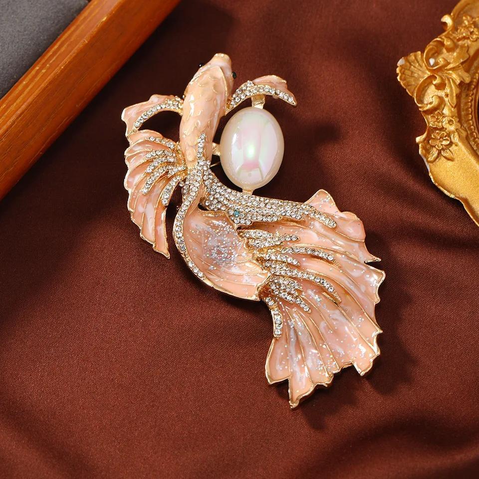 Hayvon shaklidagi ajoyib vintage uslubidagi mermaid brosh pin, emal va porloq rhinestone'lar bilan bezatilgan, hashamatli uniseks zargarlik aksessuari
