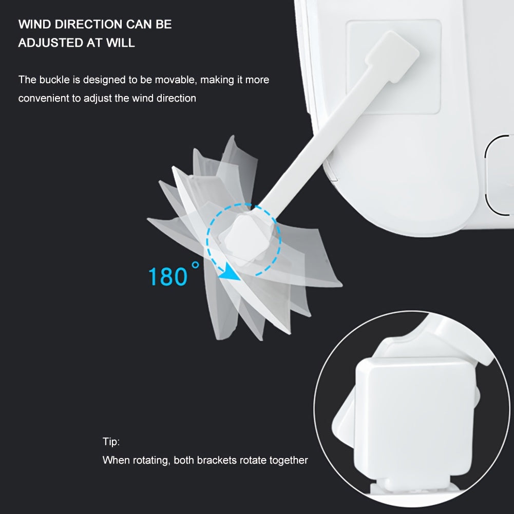 Kengaytiriladigan dizaynli, plastikdan yasalgan, qo'lda 180° burchakni sozlash imkoniyatiga ega bo'lgan, elektr energiyasiz havo oqimini boshqarish uchun universal AC vent shild.