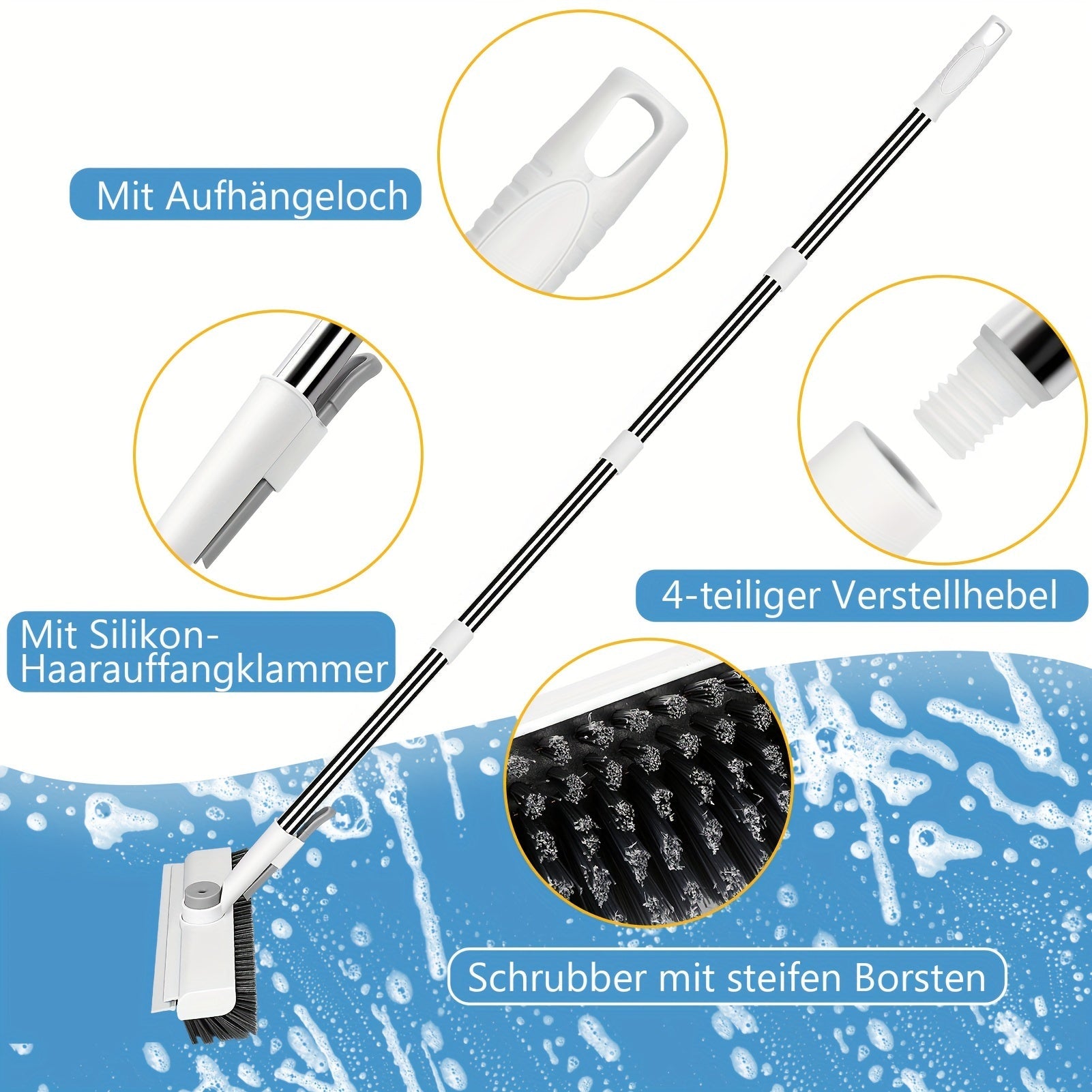 Uzoqroq cho'ziladigan pol tozalash cho'tkasi, zanglamaydigan po'latdan yasalgan tutqichi - hammom, oshxona, patio va plitka yuzalarini tozalash uchun mukammal.