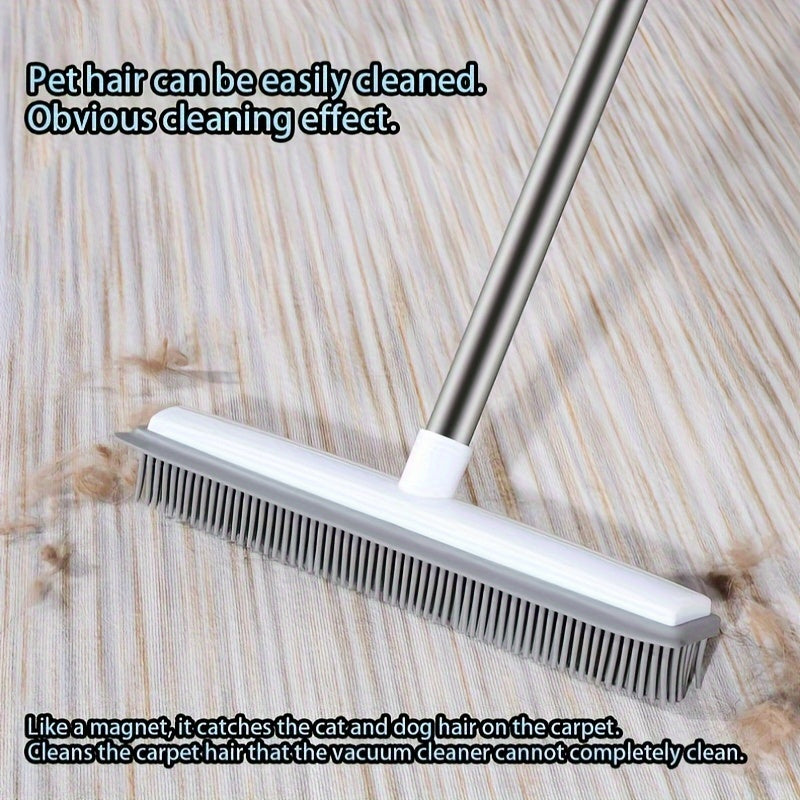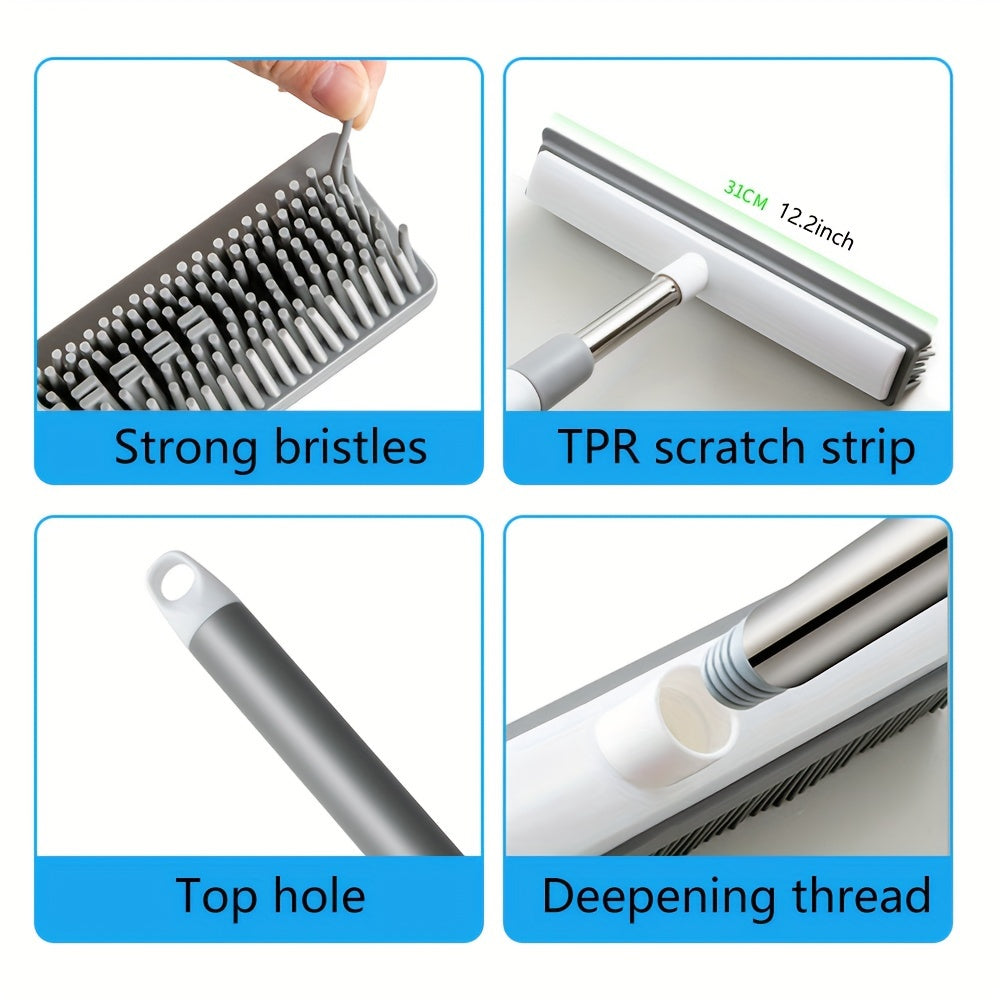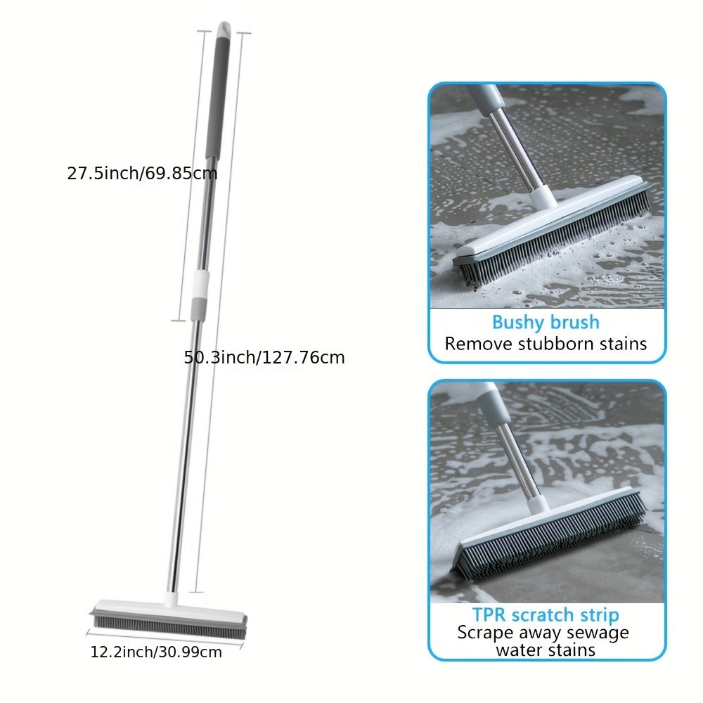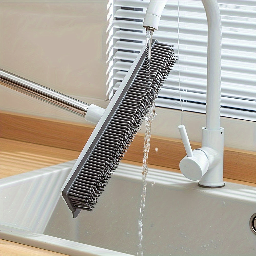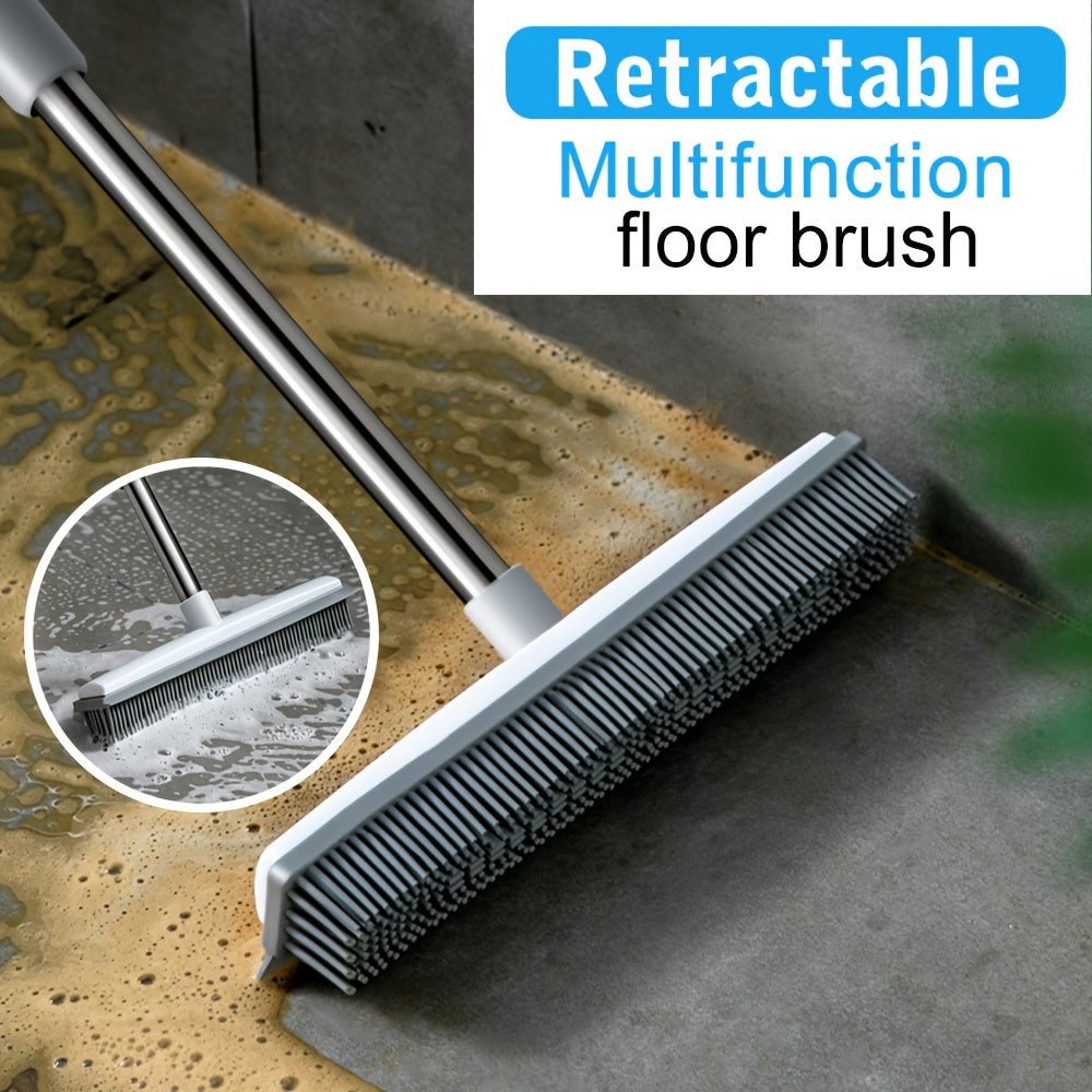 Uzaytiriladigan rezina qopqog'li supurgi, scraper, zanglamaydigan po'lat va silikondan, ko'p funktsiyali pol va hayvon tuklarini tozalash uchun