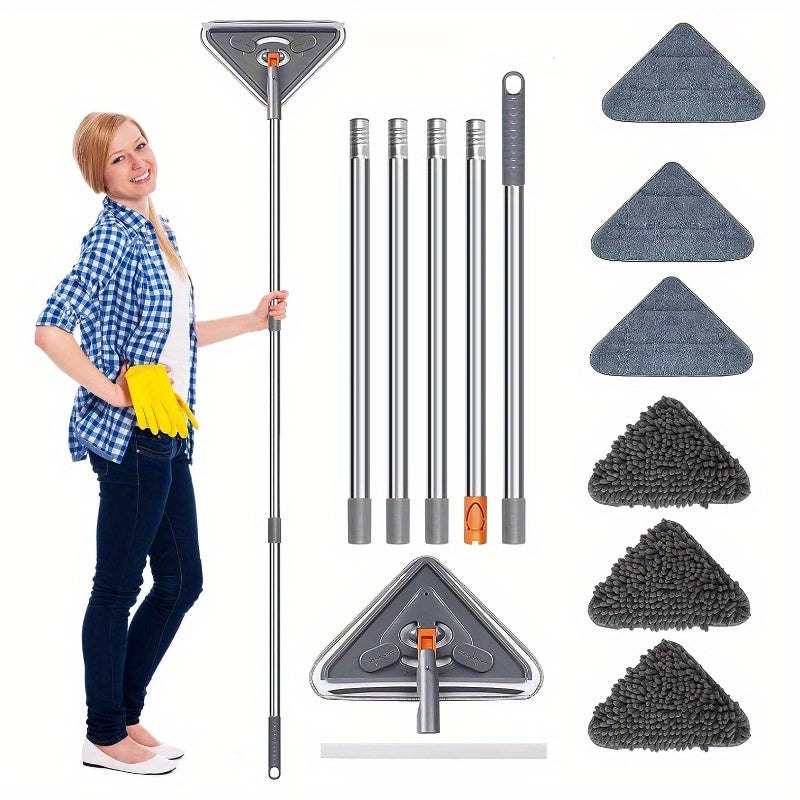 360° aylanuvchi uzun tutqichi 215.9 sm bo'lgan kengaytiriladigan devor tozalash mop - yotoqxona, hammom va yashash xonasidagi shiftlar, derazalar va pollarni tozalash uchun 6 ta mikro tolali pad bilan birga keladi.