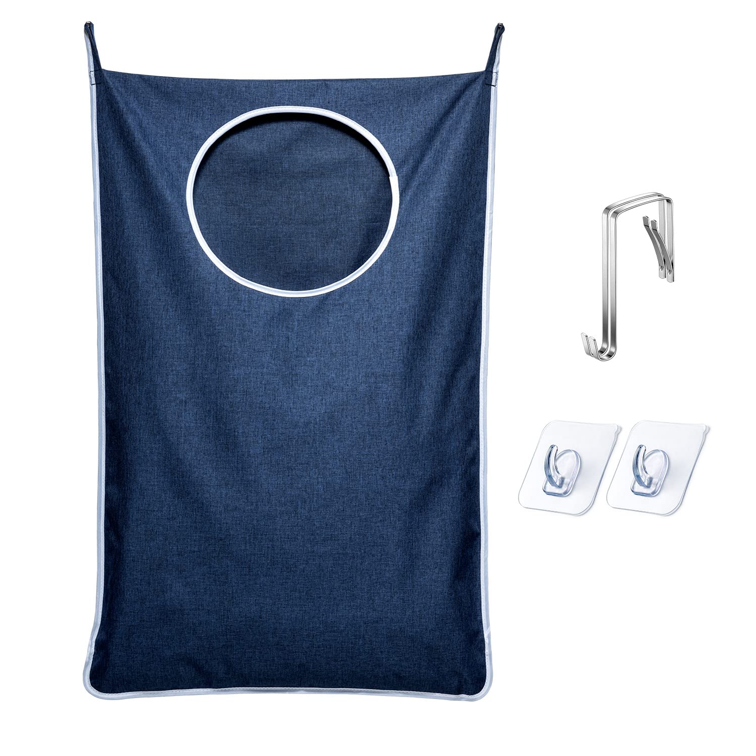 Katta O'lchamdagi Eshikga Osiladigan Kir Yuvish Hamperi Sumkasi, Ikkita Turi Qulflar Bilan, Butun Oila Uchun Katta Ochiq, 36.5X22.5 Dyum, Kulrang/Ko'k/Qora