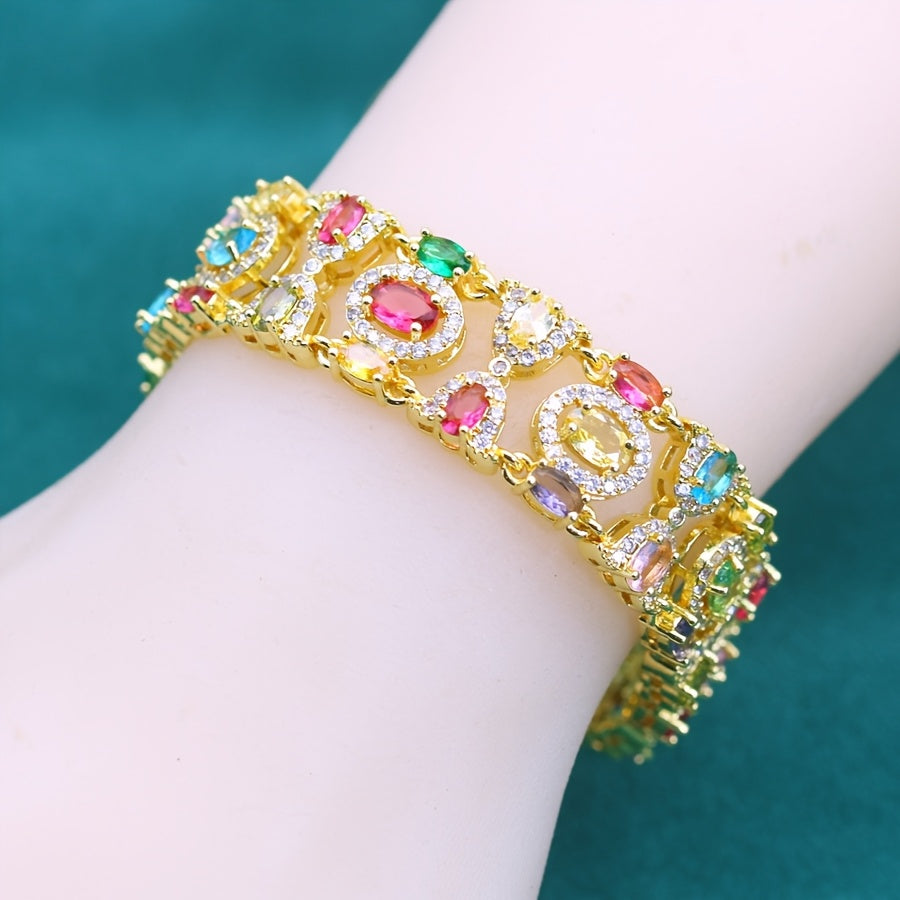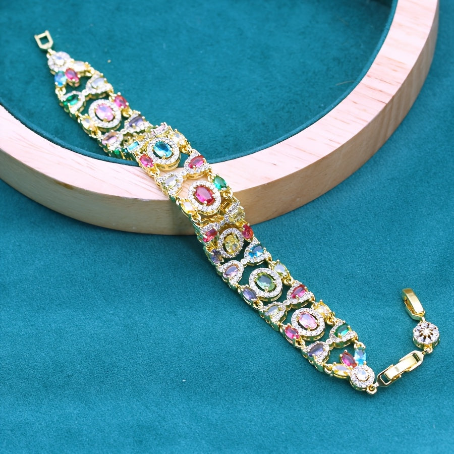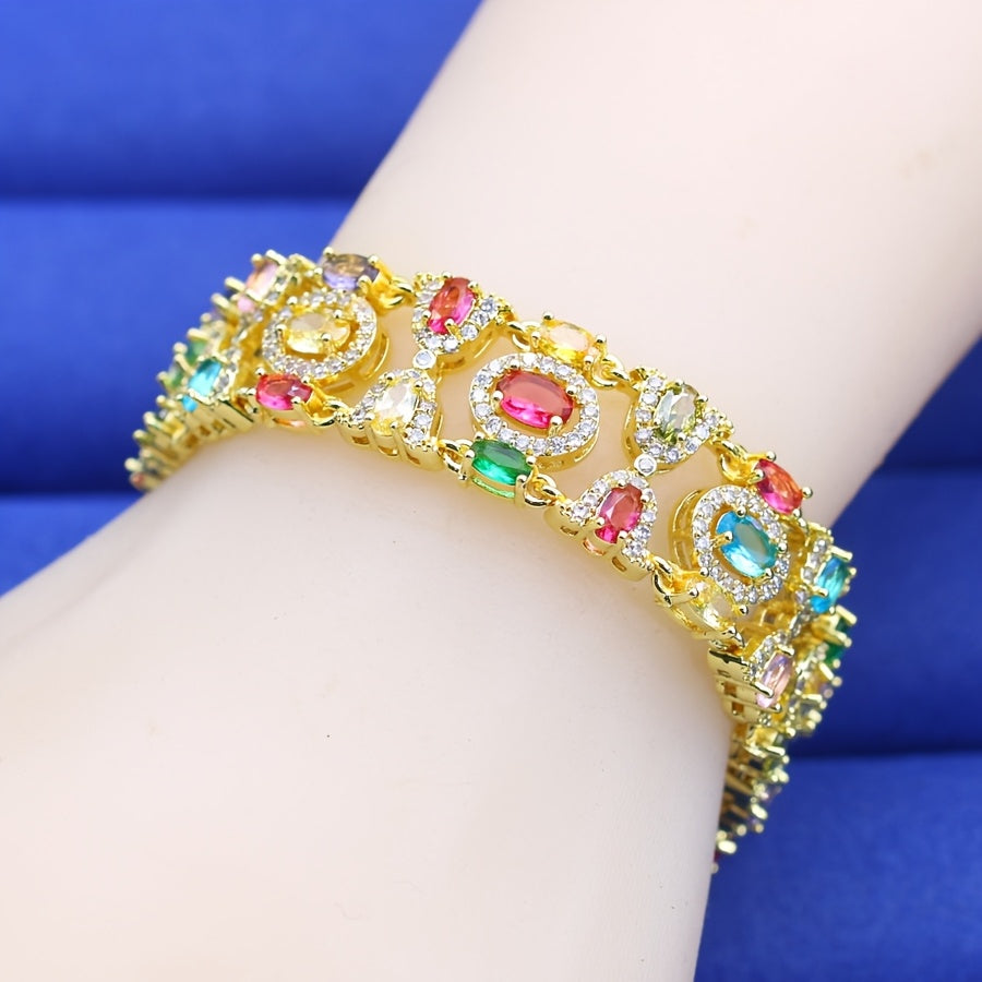 18K oltin qoplamali extravagant bilaguzuk, ko'p rangli kubik zirkoniy bilan - sozlanadigan qopqoq xususiyatlari, to'ylar va maxsus tadbirlar uchun ajoyib, 14-fevral yoki Rojdestvo uchun mukammal sovg'a