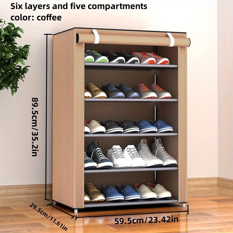 F uslubidagi oddiy poyabzal tokchasi, changdan himoyalangan saqlash va ko'p qatlamli dizayn bilan