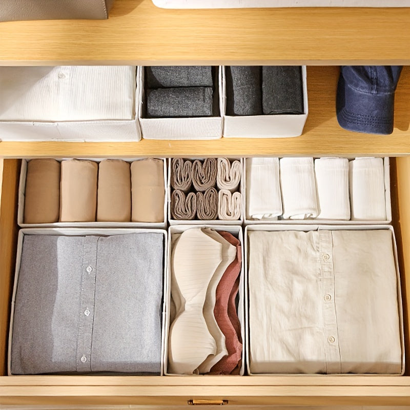 1 ta bo'limli mato ichki kiyim saqlash qutisi, oson saqlash uchun egiladigan. Ichki kiyim, brass, paypoqlar va boshqa buyumlarni kiyim shkafingizda, shkafda, yotoqxona, uyda yoki yotoqxona ichida tartibga solish uchun ideal, joyni tejashga yordam beradi.