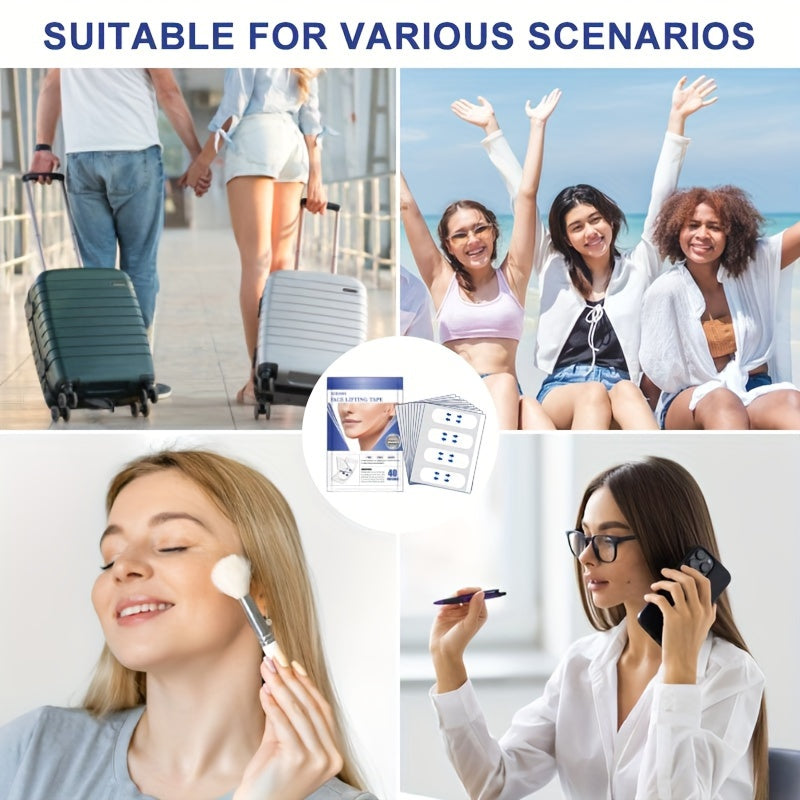 Ko'zlar, jag' va bo'yin uchun yuzni ko'tarish lentasi, suv o'tkazmaydigan, teriga do'st, yengil bej