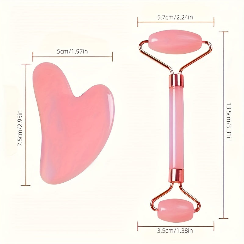 Yuz massaj roliki, yurak shaklidagi qirqish taxtasi, portativ tana massaji asboblari to'plami, elektrsiz ABS material, batareyalar kerak emas - 2 dona.