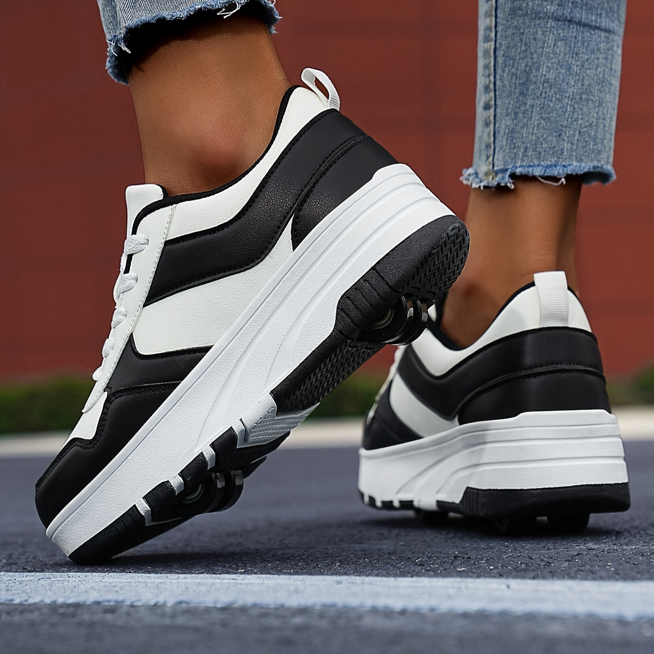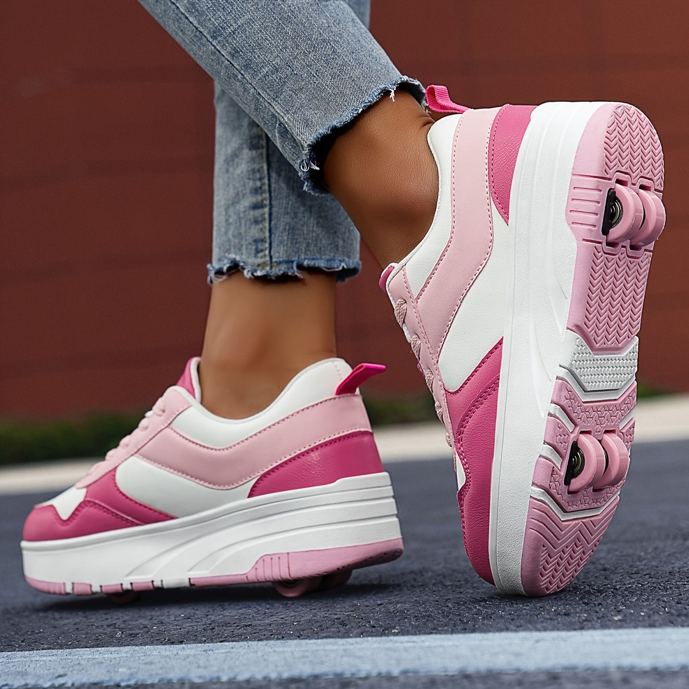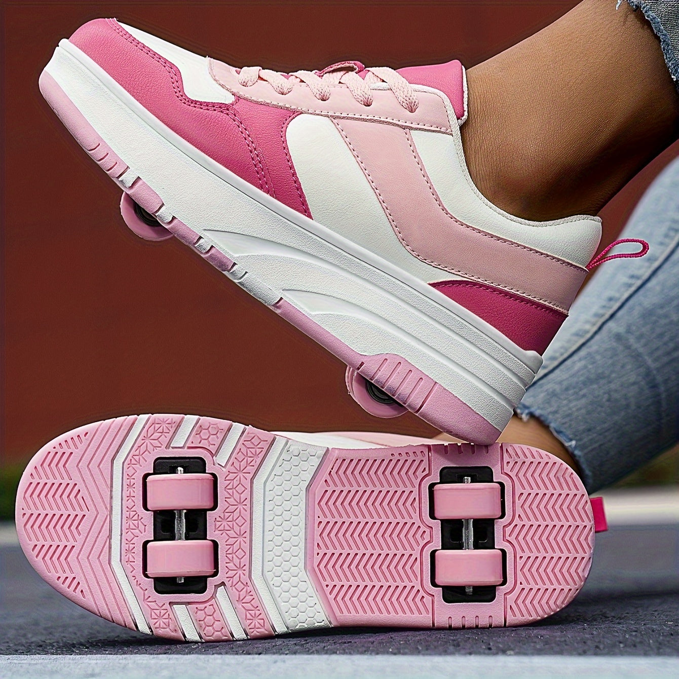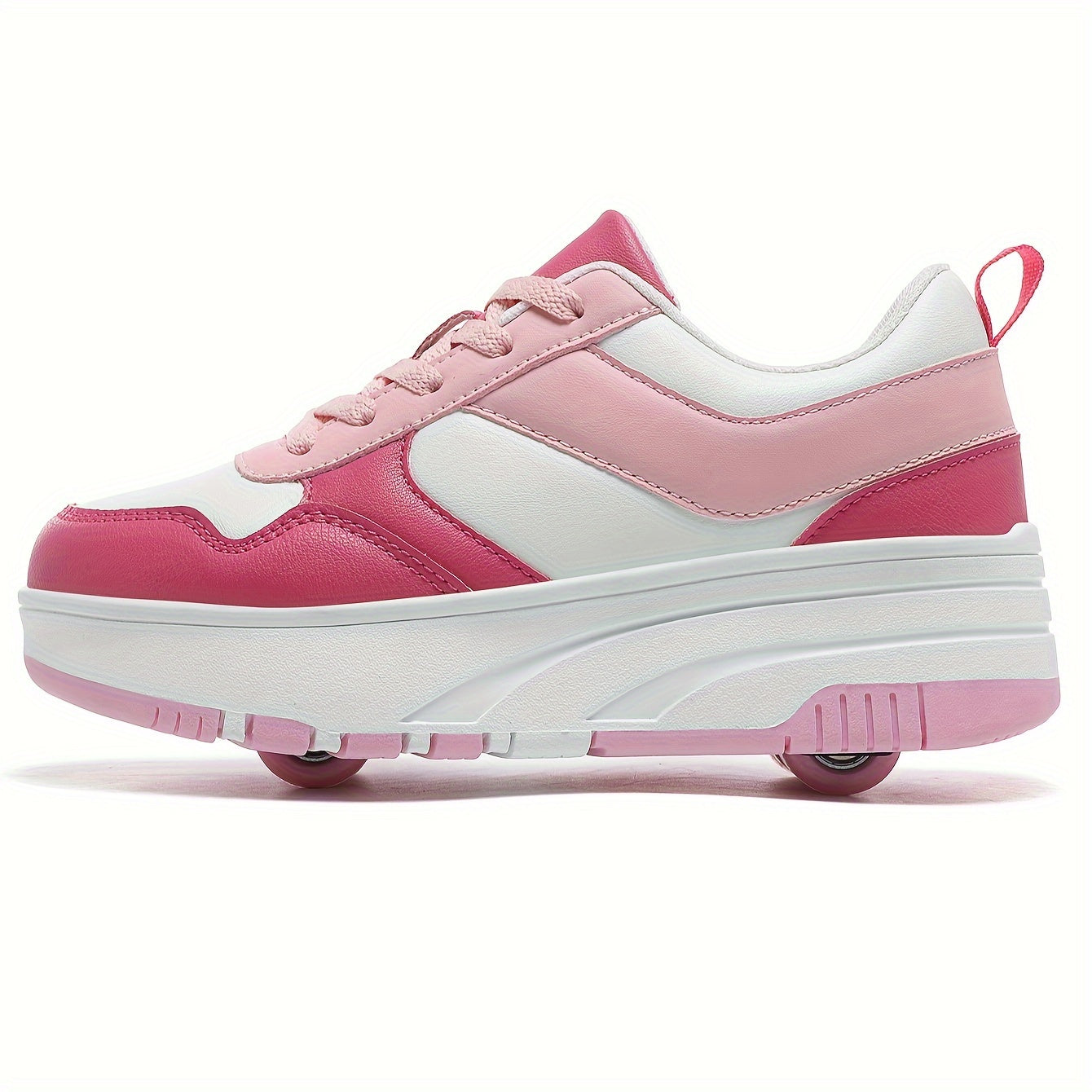 Yoshlar uchun pushti va oq dizayndagi retro uslubidagi moda rolikli konkilar, sozlanadigan qistirma tasmalari va nafas oladigan material. Partiyalar, sport va tasodifiy kiyimlar uchun mukammal. Mustahkam TPR.