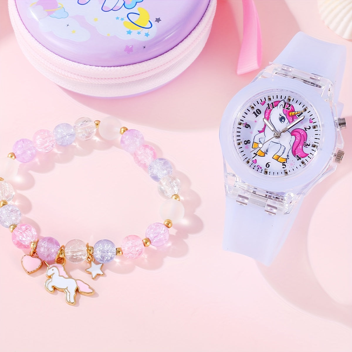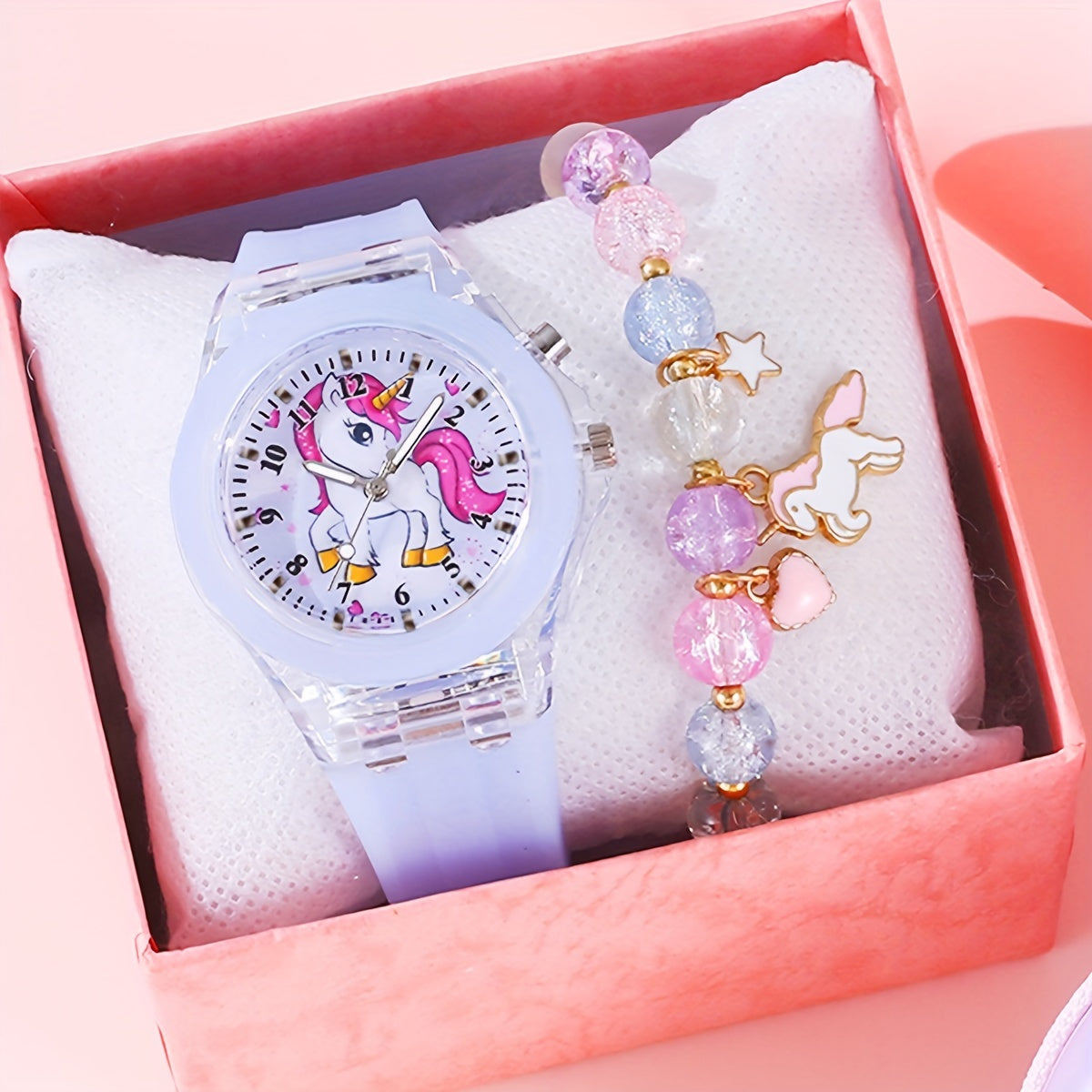 Uniseks Unicorn Kvarts soat va bilaguzuk to'plami Silikon taqa bilan ajoyib zargarlik buyumlari