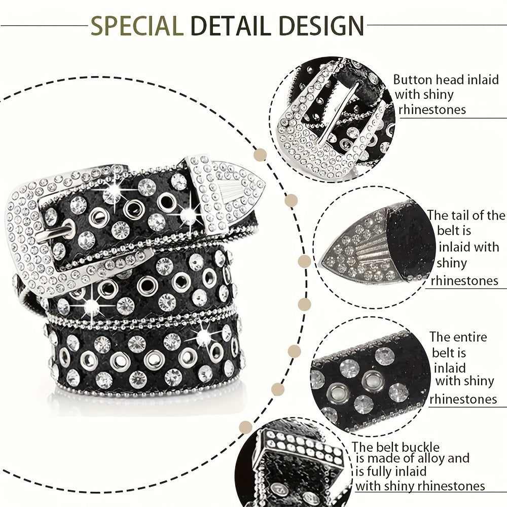 Men Women PU Belt Water Drill Skull Rivet Solid Color Stylish Accessory