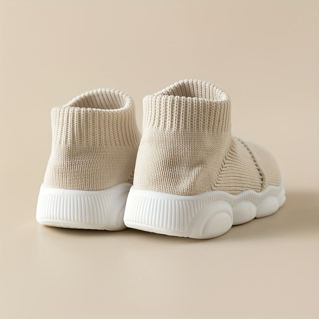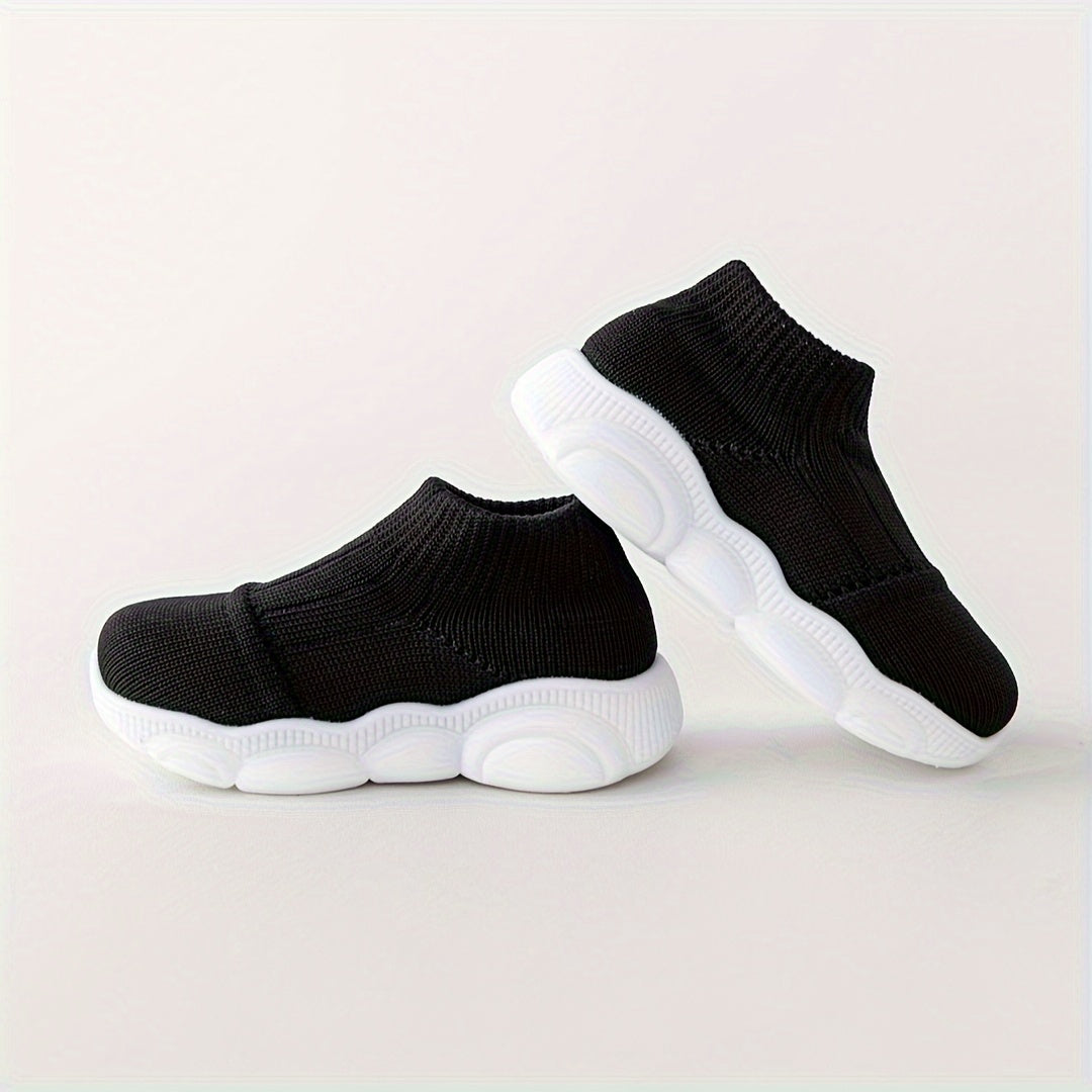 Kichkina bolalar uchun slip-on sport poyabzali, nafas oladigan mato, sirpanmaydigan rezina oyoq kiyimi, kundalik va sport uchun